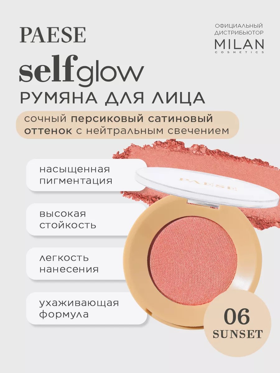 | Полное наименование товара | PAESE SELFGLOW Румяна для лица, тон 06 (с мягким свечением) |