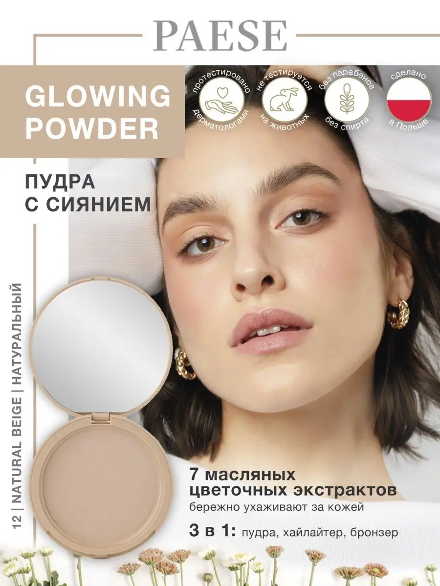 Подарите своей коже нежное естественное сияние! Компактная пудра для лица Glowing Powder с эффектом легкого мерцания и бархатистой мягкой текстурой обеспечит Вам безупречное тонкое нанесение и разглаживающий эффект. Данная профессиональная декоративная косметика для макияжа лица содержит оригинальную формулу из 7 цветочных экстрактов: жасмин, пион, вишня, нероли, лаванда, роза и сирень, которые эффективно выполняют уход за кожей лица. Бархатная бронзирующая пудра-хайлайтер идеально ложится на кожу, оказывает антисептическое и противовоспалительное действие. А также минеральная мерцающая пудра устраняет шелушение и раздражение, придает коже гладкость. Итог - лицо выглядит отдохнувшим и сияющим. Увлажняющую пудру с блеском можно использовать как хайлайтер или бронзатор, который обеспечит эффект хорошего загара, если у Вас светлая кожа. Компактный футляр пудры удобен в использовании, так как дополнен зеркальцем и без труда поместится в Вашу маленькую сумочку или рюкзак.