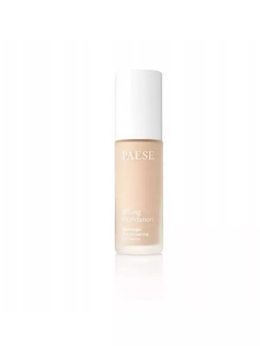 Paese Lifting Foundation, Foundation tone 100 30 ml. Smoothing and lifting base for dry, tired and mature skin. Optically smoothes wrinkles, gives the skin a youthful and healthy look. Very well smoothes out unevenness on the skin and masks enlarged pores. Contains natural UV filters. Silicone and magnesium included in the composition promote the natural synthesis of collagen. The ideal base for mature and dull skin with a light-reflecting effect and a matte finish. Active ingredients: Silicon and magnesium - support the production of collagen and elastin, making the skin stronger and more elastic; Lifting polymer - optically smoothes wrinkles. The polymer consists of tiny molecules that fill in wrinkles and reflect light, making wrinkles less noticeable, facial features softer, and the skin smoother; Vitamins A, C, and E play a vital role in combating the harmful effects of free radicals and provide the skin with all the necessary components, improving its tone; Provitamin B5 moisturizes, restores, and soothes irritations; Glycerin binds water, helping the skin retain moisture.
