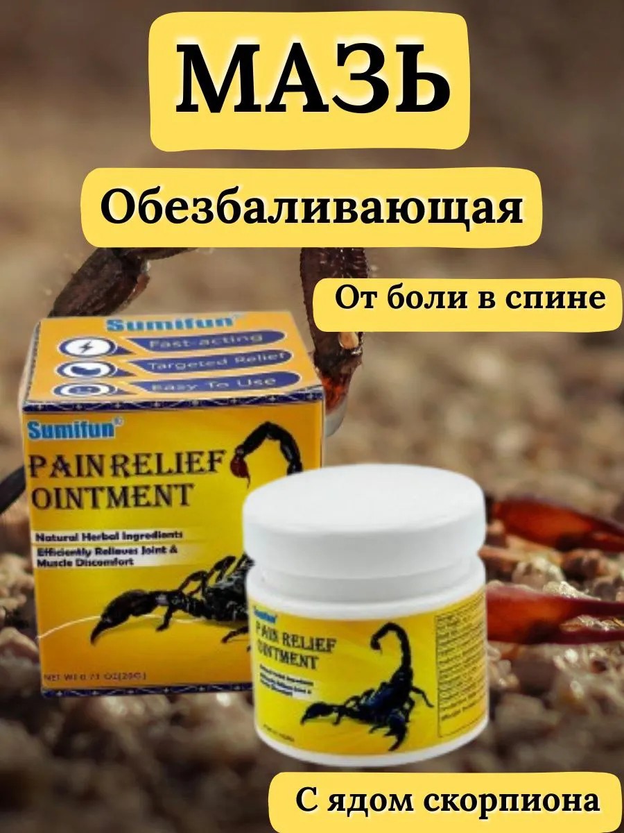 Мазь с ядом скорпиона — это натуральный и мощный помощник в борьбе с хронической и острой болью. Компактная упаковка позволяет носить её с собой и использовать при необходимости в любой ситуации.