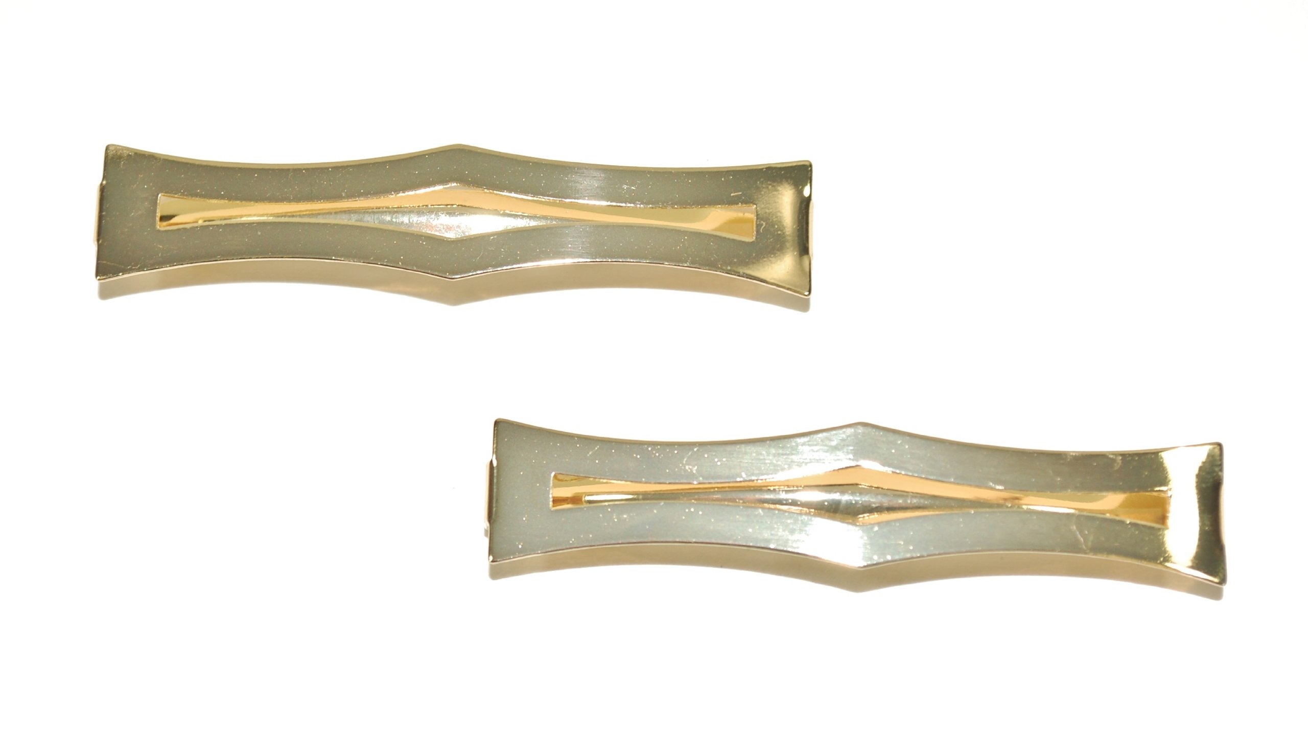 Pair of Double Bar Clip-in End Barrettes Hair Slides. (Gold)