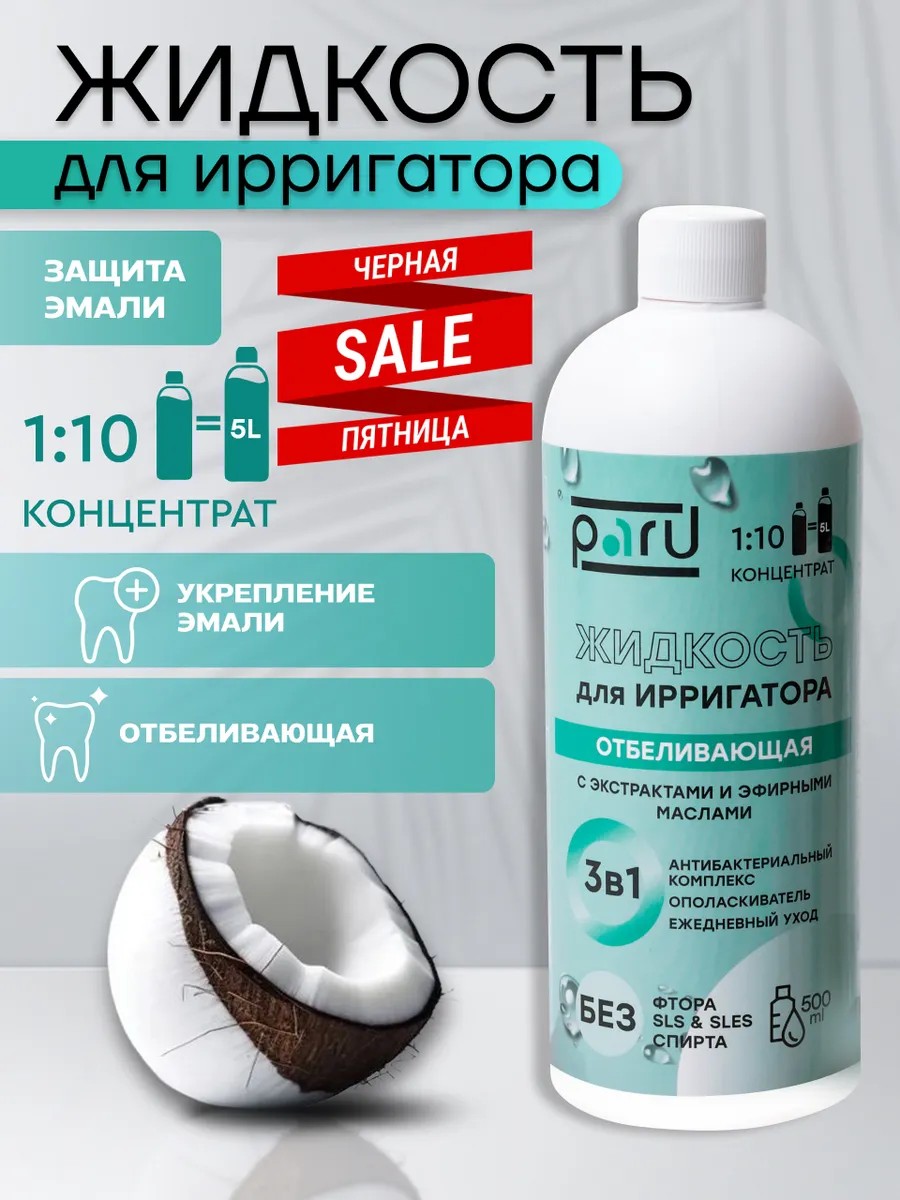 The whitening irrigator solution is an antibacterial concentrate specially formulated for oral care. It is designed for rinsing the mouth and promoting dental hygiene. It can be used as a standalone oral care product or as an irrigator solution. Thanks to its formula, the irrigator solution has a refreshing effect that lasts for a long time. PARU mouthwash contains antibacterial ingredients that fight bacteria and prevent plaque and cavities. Thanks to its formula, the irrigator solution gently cares for gums without causing irritation or inflammation. It also acts as a mouth freshener, imparting additional freshness and a pleasant aroma. An irrigator rinse is an essential product for anyone who cares about their smile and oral health. An irrigator solution is suitable for rinsing the mouth and also acts as a dental foam. Irrigator fluid is an indispensable aid for those who want to maintain the health of their teeth and oral cavity. Irrigator solutions are specialized liquids used in conjunction with an oral device called an irrigator. Irrigator fluid ensures the beauty and health of your teeth and gums. PARU irrigator rinse effectively removes plaque and bacteria that accumulate in the mouth, and also prevents gum disease and tooth decay. With an irrigator, you can organize effective oral care at home. The choice of a specific solution depends on the needs and individual characteristics of each person. But in general, using irrigator solutions is an essential element in maintaining oral health and hygiene. A great gift.