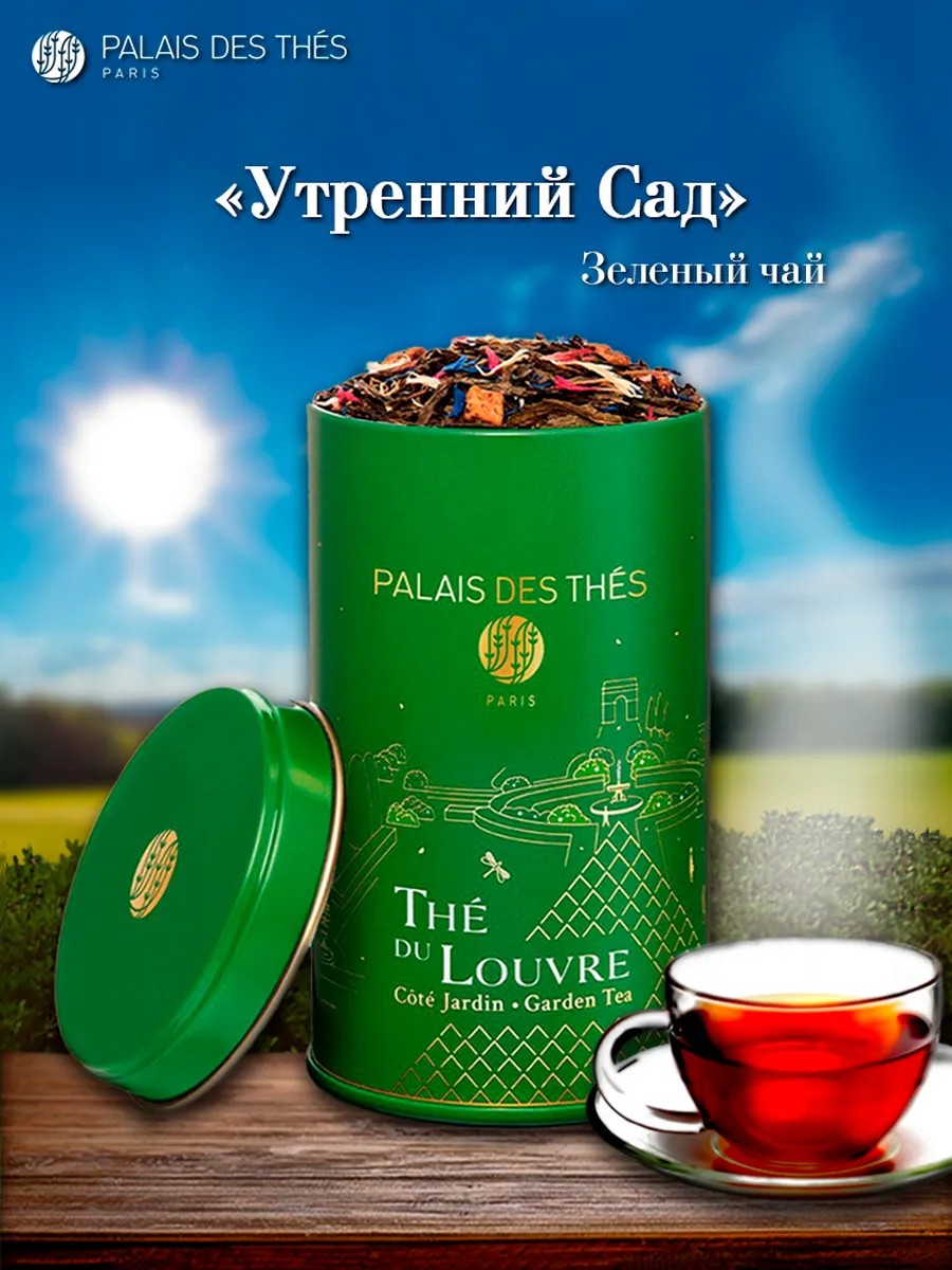 This aromatic blend of green tea with the aroma of apple, plum, and quince is inspired by serene strolls along the alleys of the Tuileries Garden, among the flowers and shady groves between the Seine and the Louvre Palace.