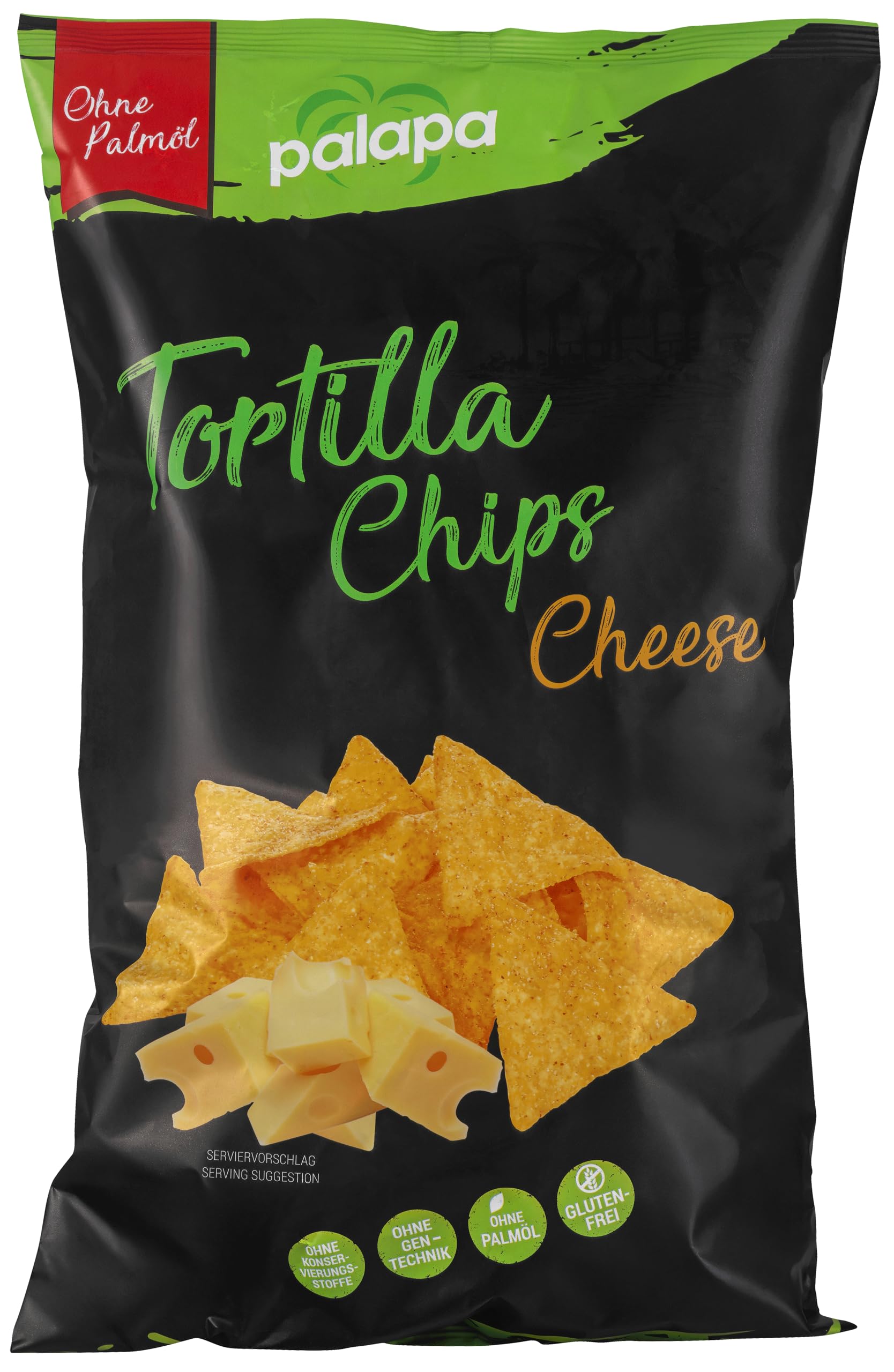 From now on, our popular Palapa Tortilla Chips 450g are also available in Cheese flavor. These triangular tortilla chips made from corn flour perfectly complement the tried-and-tested varieties of Plain, Chili, and BBQ – Enjoy the real taste. INGREDIENTS Ingredients: Corn flour, palm oil, salt, cheese powder (milk) (0.8 ), dextrose, lactose, maltodextrin, flavorings (milk), onion, garlic, spice extracts, and acidifier: citric acid.