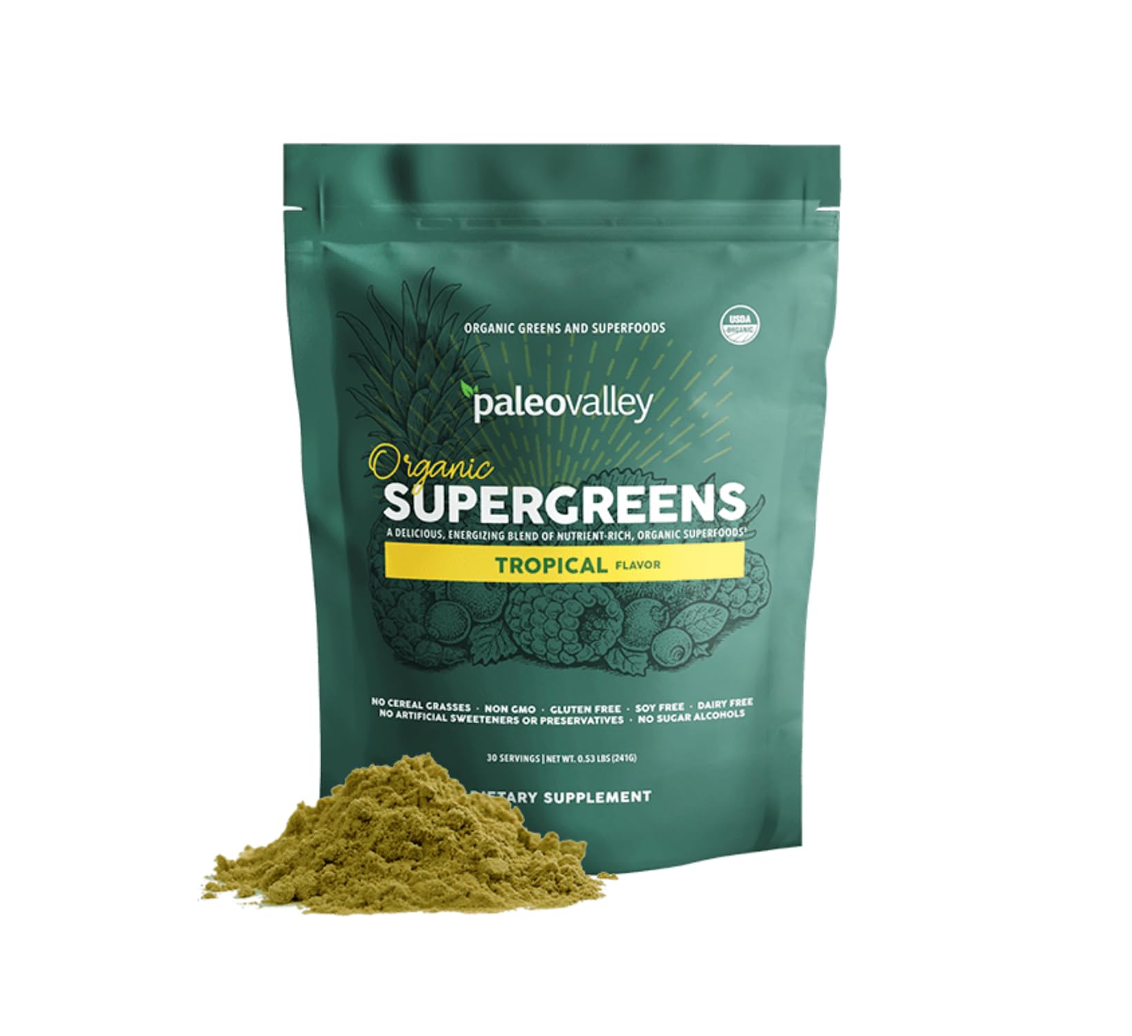 Small Company, Big Heart: At Paleovalley, our mission is to help people reclaim vibrant health. We provide products that prioritize nutrient density in an industry that prioritizes everything else. Clean and raw: Every superfood we've included is organic and does not contain soy, grain, dairy, gluten or GMO plus, it doesn't contain added sugars, artificial sweeteners, or sugar alcohols making it wonderfully good for you!. Good for the gut: We formulated Organic Supergreens without any cereal grasses, such as wheatgrass, barley, oat and rye, because these are known to have negative effects on the human body instead, it includes prebiotic fiber to nourish your gut and optimize your digestive function. Just mix into a glass and enjoy: We love creating nutritious products that taste delicious, and our Organic Supergreens is a refreshing, energizing drink that tastes so good, even kids love it!. Get delicious energy support with 23 organic raw superfoods: Organic Supergreens is a powerful blend of organic, antioxidant-rich superfoods, including kale, broccoli, and turmeric, gently dried to preserve their nutrients and make them easy to absorb by your digestive tract.