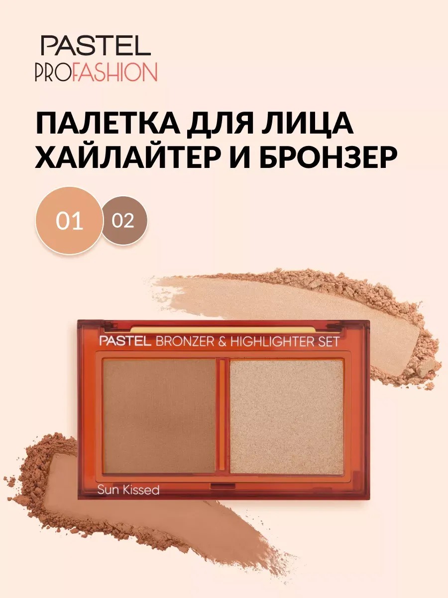 Палетки для лица Pastel Cosmetics – это прекрасный выбор для создания как натурального дневного, так и чувственного вечернего образа. Палетка для макияжа состоит из бронзера, который подчеркнет контуры лица и придаст эффект легкого загара, а также хайлайтера, который обеспечит деликатное сияние и акцент в макияже. Бронзер для лица обеспечит легкое нанесение и шелковистое покрытие благодаря нежной сухой текстуре. Он не оставляет пятен и не скатывается, что делает его идеальным для использования на зонах лица и декольте. Хайлайтер для лица имеет сияющий нюдовый оттенок, который подходит для любого цвета кожи и делает макияж более выразительным. Стойкий бронзер содержит проверенные ингредиенты и не тестируется на животных, что делает его подходящим для веганов, вегетарианцев и является халяль. Не содержит вредных компонентов и протестирован дерматологами, поэтому обеспечит комфорт даже для самой чувствительной кожи. Стойкий хайлайтер для лица в компактном футляре из высококачественного пластика с крепкой защелкой, что позволяет легко поместить его в косметичку и всегда иметь под рукой. Палетка для лица универсальна, так как подходит для контуринга и создания естественного сияния. Бронзер и сухой хайлайтер могут использоваться как самостоятельный продукт или в сочетании с другими средствами. Сияющий хайлайтер и стойкий бронзер превосходный дуэт для того, чтобы получить свежую красивую кожу в любое время года.