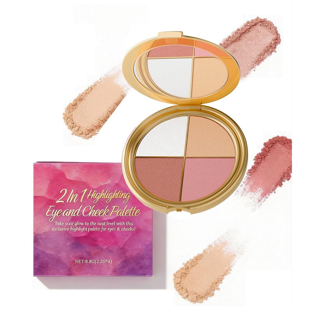 Palette de Fards Paupi res et Blush Scintillants 3 en 1 (surligneur/fard Paupi res/blush) Facile Utiliser Longue Dur e Am liore la Pr cision Du Maquillage(5pcs)