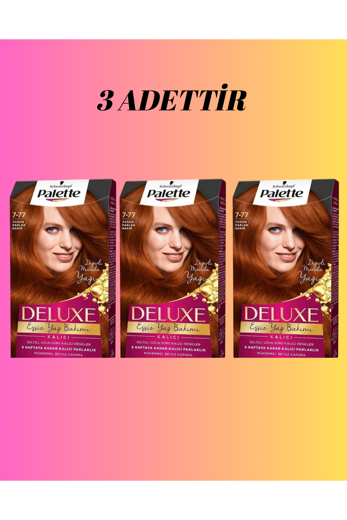 Palette Deluxe 7-77 Intense Shine Copper Hair Dye x3