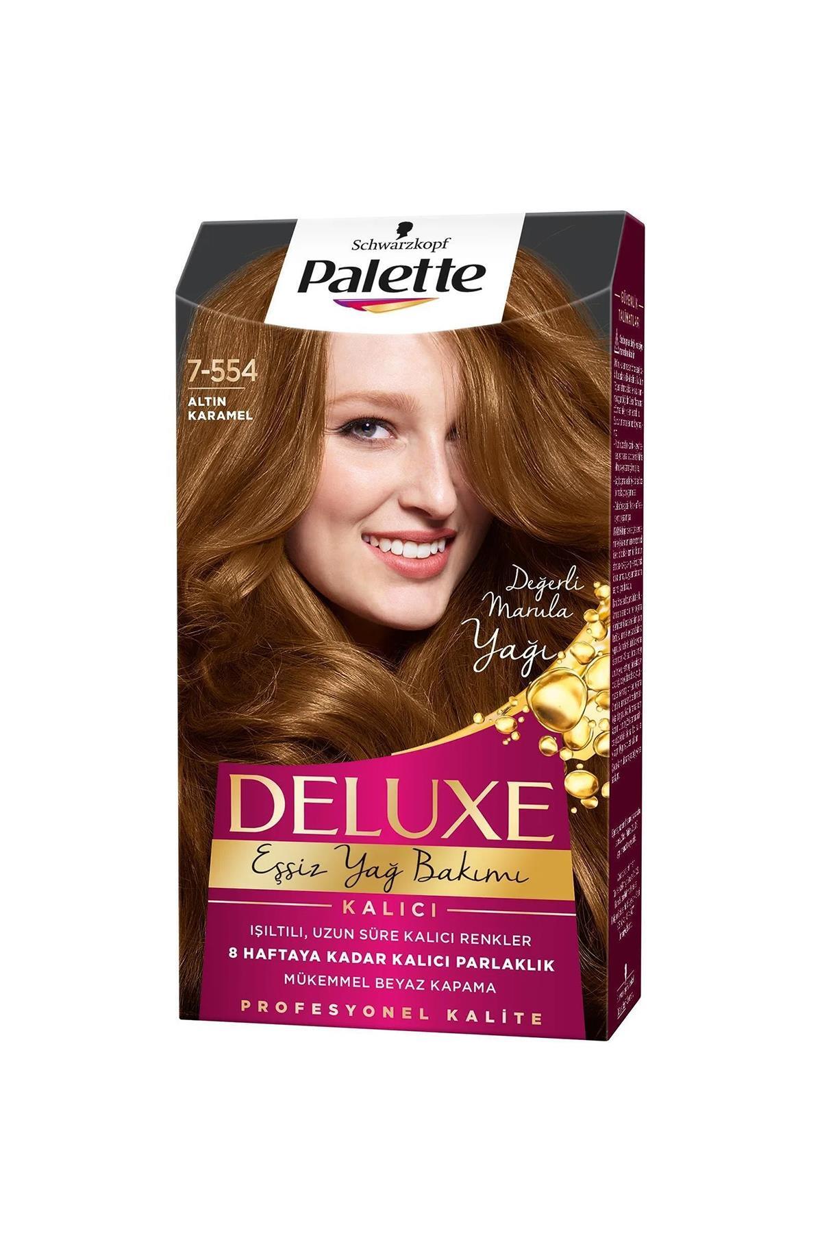 Palette Deluxe Hair Dye No: 7.554 Golden CaramelUp to 30 more shine You will definitely find the right color for you among the rich color options in the palette deluxe portfolio Up to 100 white coverage Long-lasting colors Effective care for dazzling shine Oleo-Gold elixir for rich care after dyeing With the valuable argan oil it contains, it deeply nourishes especially long hair, making your hair look longer. It provides a beautiful and healthy appearance. It provides more well-groomed hair with intense and bright color results.