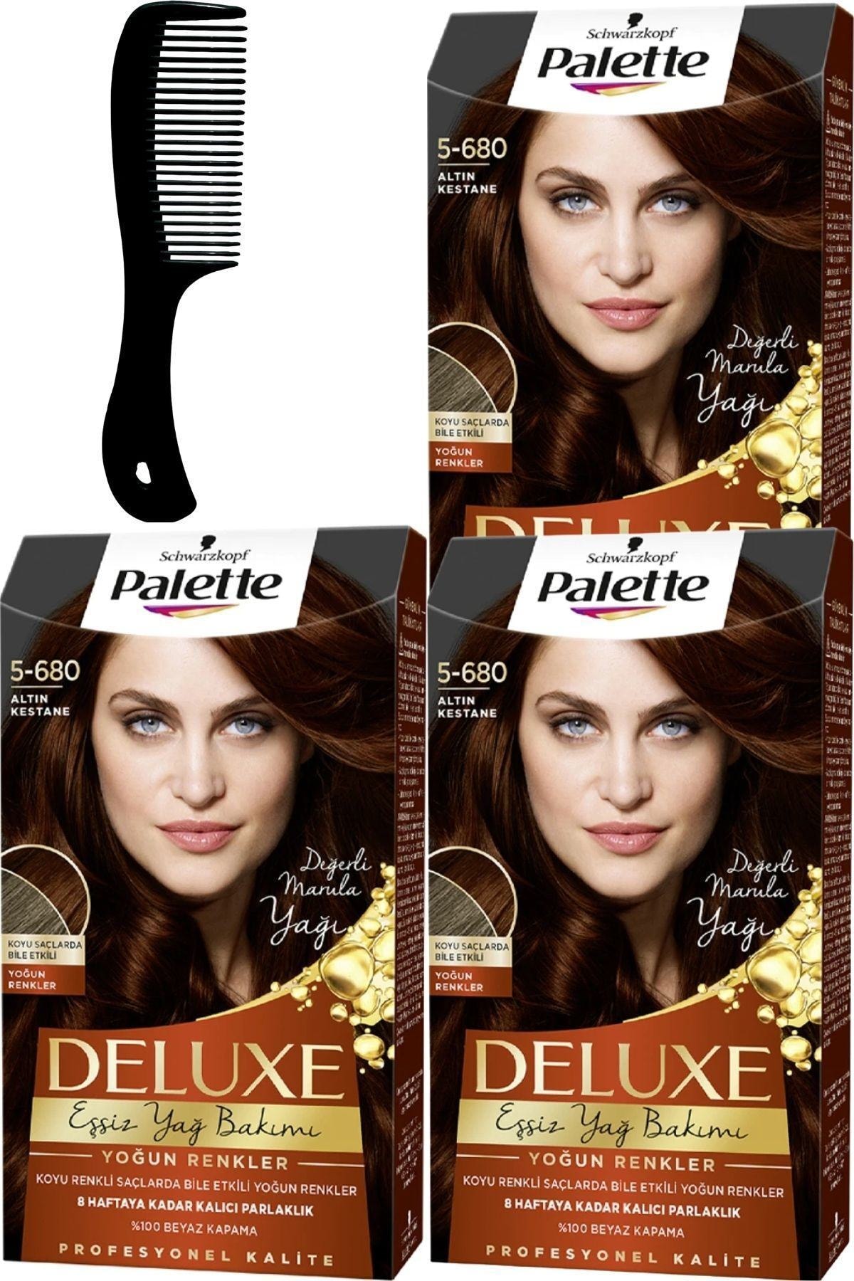 Palette Deluxe Intense Colors Hair Dye 5-680 Golden Chestnut X 3 Pieces + Hair Opening Comb