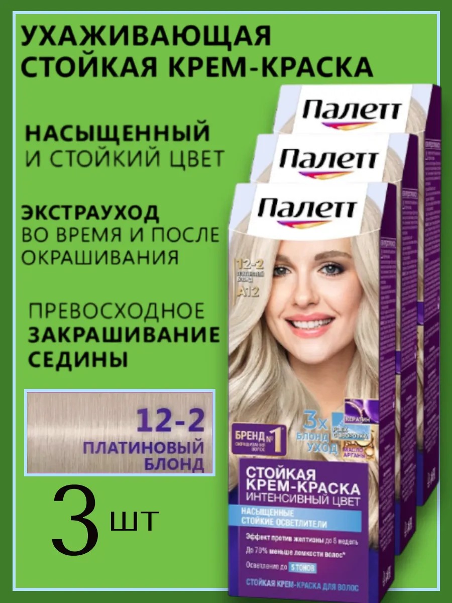 palette Крем-краска для волос A12 Платиновый Блонд 12-2 3шт