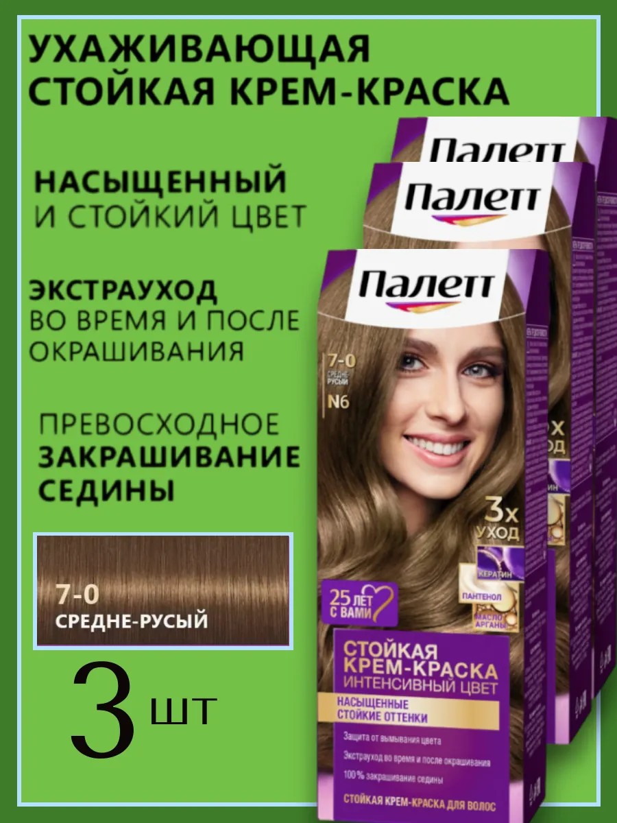 palette Крем-краска для волос N6 средне-русый 7-0 3шт