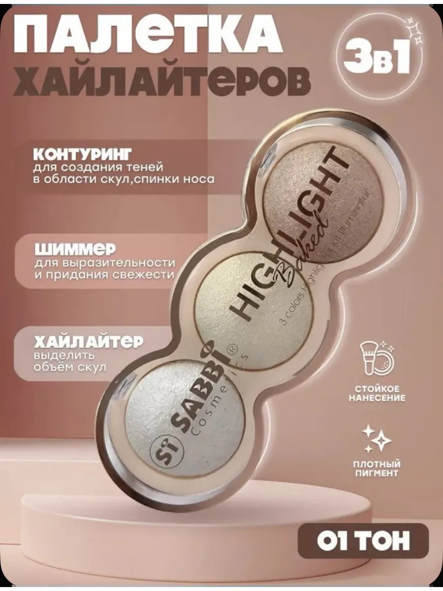 | Полное наименование товара | Палетка сухих хайлайтеров для лица, блестящие тени, тон 01 |