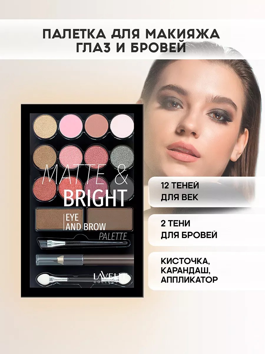 The Lavelle Eyeshadow and Brow Palette is the perfect makeup kit for creating a variety of unique looks. This luxurious eyeshadow palette will become your indispensable assistant in creating the perfect makeup look. It contains everything you need for an expressive and captivating gaze. Matte and shimmery eyeshadows are the foundation of a successful look, and with our makeup, you can enhance your beauty and express your individuality. Our eyeshadow set offers a wide range of shades, including both glitter and matte shades. Pink, gray, gold, and other delightful colors await you, helping you create an unforgettable look for any occasion. Shimmery shadows will add a unique shimmer to your eyes, while matte shades will create a deep and mysterious look. Thanks to the high quality of Lavelle cosmetics, nude eyeshadows are easy to apply, blend perfectly, and are long-lasting. You can be confident that your makeup will withstand any challenge—whether it's dancing at a party, a long walk on a hot day, or just a long day at work. The eyeshadow palette also includes eyebrow shadows. The brown eyebrow shadows are perfect for a natural and precise brow look. The palette also includes a brush for applying eyebrow shadows, ensuring maximum precision and a professional result. The eyeliner is long-lasting yet blendable, helping you create dramatic eyeliner. The black eyeliner is the perfect complement and highlight of the palette. The Lavelle palette isn't just ordinary cosmetics; it's a creative outlet. Each shade has its own story and energy, and we're confident you'll be able to convey your mood and emotions with them. The Lavelle eyeshadow set exudes boldness, confidence, and flawlessness in every move. The Lavelle eyeshadow palette is your indispensable eye makeup assistant!