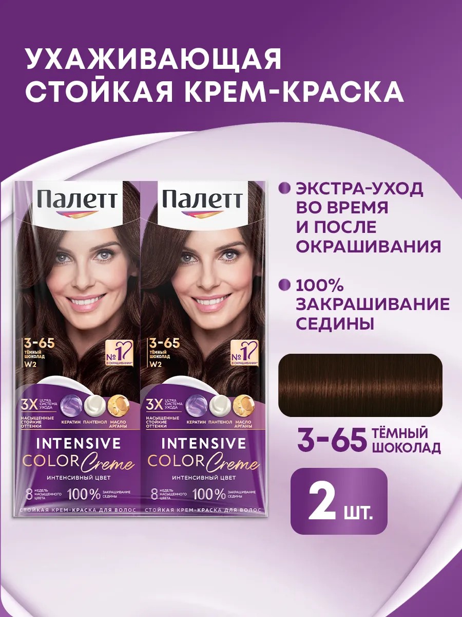 Стойкая крем-краска 3-65 (W2) Темный шоколад, 110 млх2шт