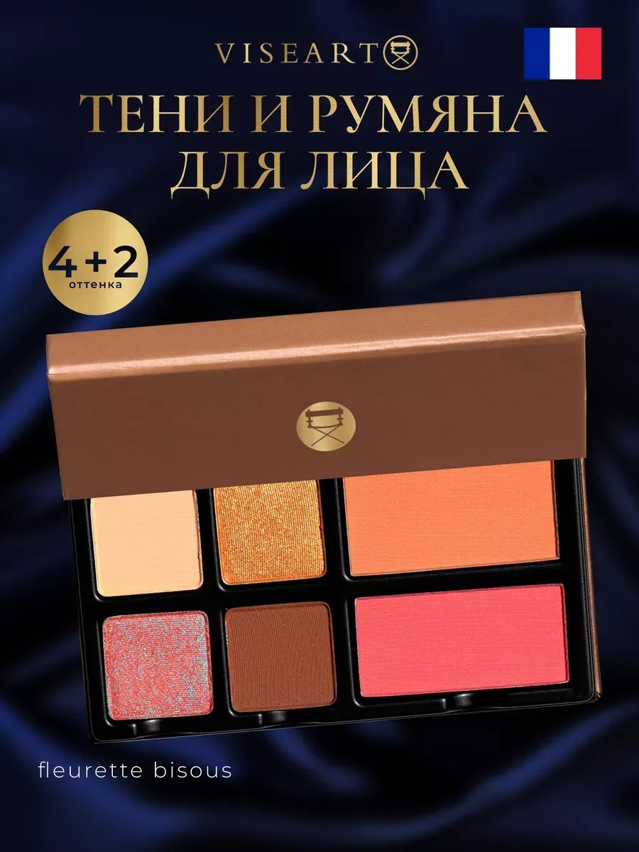 Fleurette Bisous — это очаровательный поцелуй персикового совершенства, ослепительного сияния и свежей сочной пышности. Палитра состоит из 4-х оттенков теней для век и 2-х оттенков румян. Румяна можно наносить тонко для естественного цвета или наносить слоями для получения насыщенного вида. Текстура теней обладает шелковистой, пудровой текстурой, идеально наносится, легко скользят при растушевке, создают ровное покрытие и приятные ощущения. Тени стойкие и не осыпаются в течение дня, с ними можно легко создать нежный дневной или выразительный вечерний макияж. Благодаря высокой пигментации тени качественно ложатся на веко. Оттенок 1: Belle - этот мягкий кремовый оттенок можно использовать как основу для всего века или как основу под другие дополнительные тона. Оттенок 2: Allure — этот золотистый оттенок среднего тона можно использовать как тон для всего века, наносить на внешние уголки глаз или использовать в качестве подводки. Оттенок 3: Idyllic — этот красно-синий дуохроматический оттенок можно использовать в качестве цвета для всего века, наносить на внутренние уголки глаз для придания свежего сияния, в качестве светоотражающего покрытия поверх любого из других оттенков или в качестве цветного хайлайтера. Оттенок 4: Gilded – этот терракотово-коричневый оттенок среднего тона можно наносить на все веко, в качестве переходного оттенка в складке глаза или для углубления макияжа. Румяна 1: Ardent — эти свежие румяна персикового оттенка можно использовать для придания сияющего румянца щекам. Нанесите мазок для естественного размытия цвета или нанесите слоями для получения насыщенного вида. Румяна 2: Amoureuse — яркие коралловые румяна с матовым финишем, эти свежие ярко-коралловые румяна можно использовать для придания сияющего румянца щекам. Нанесите мазок для естественного размытия цвета или нанесите слоями для получения насыщенного вида.