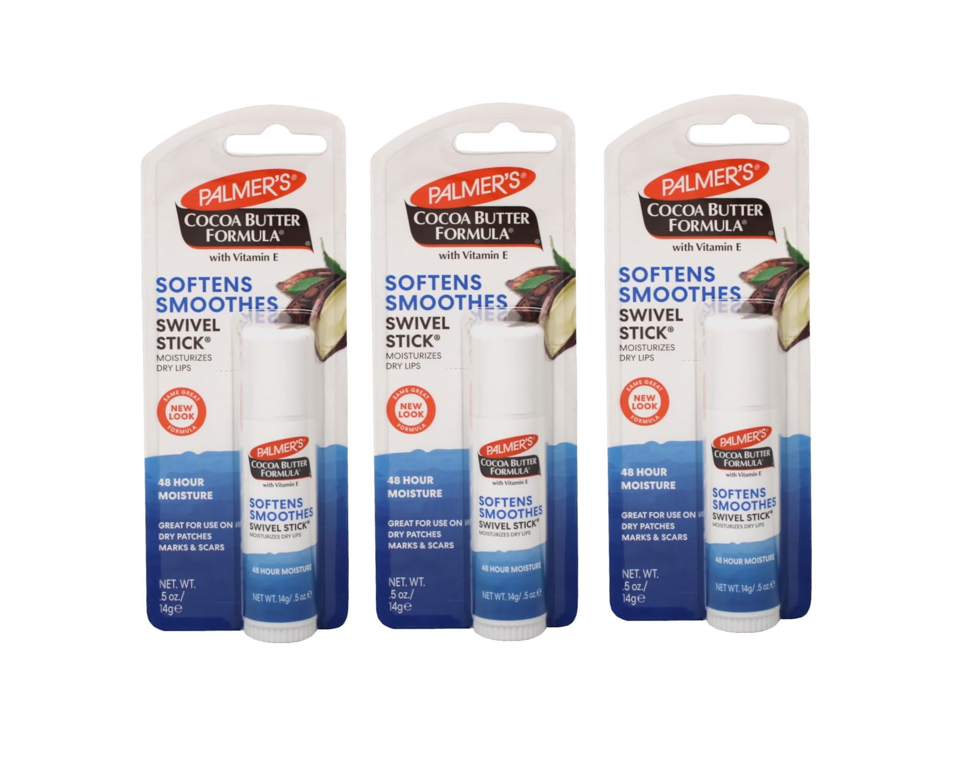 Soften and Smooth rough, dry lips with Palmer's Cocoa Butter Swivel Stick, crafted with intensively moisturizing Cocoa Butter and Vitamin E. 3-in-1 multi-purpose spot moisturizer can be used on lips, face body to moisturize rough spots, cuticles or cracked skin. Proudly made in U.S.A., Palmer's has been a trusted brand for over 180 years, providing high-quality natural products that are passed down from generation to generation. America's 1 Cocoa Butter brand Palmer's Cocoa Butter Formula uses the highest quality natural ingredients for superior moisturization head-to-toe.