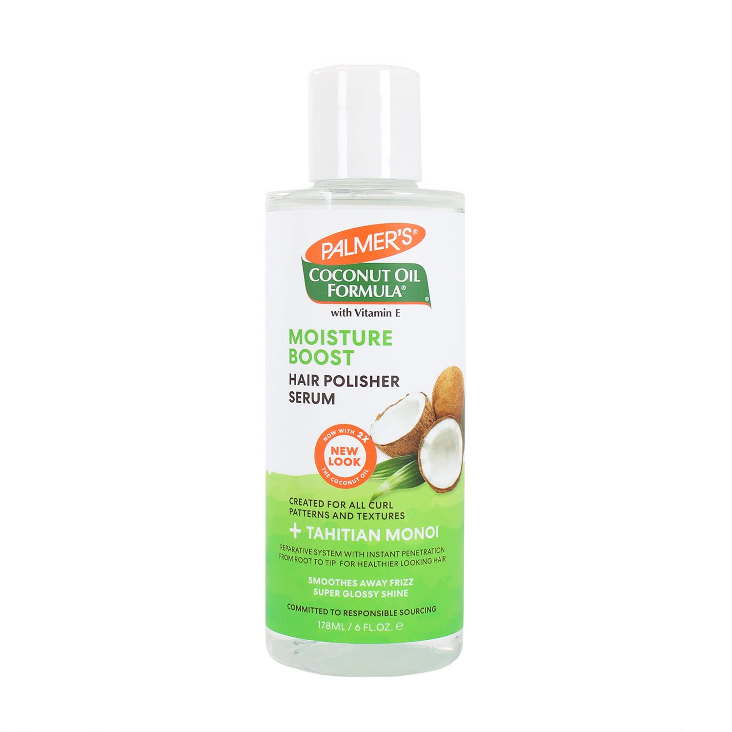 Palmer's Coconut Oil Formula product contains ethically and sustainably sourced Coconut Oil and Tahitian Monoi, infused with Tiare flower petals. These raw, natural ingredients deeply hydrate, repair damage and give hair incredible shine. Palmer's Coconut Oil Hair Polisher Serum is a shine boosting finishing serum that instantly tames frizz, add high-definition gloss and makes hair feel like silk.