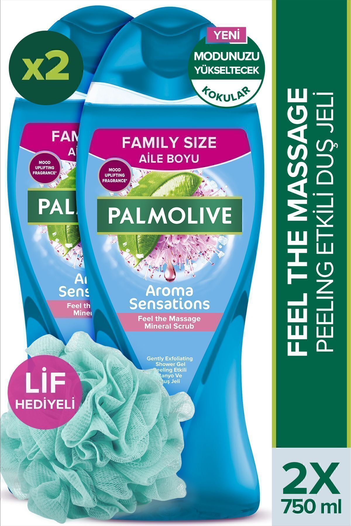 Palmolive Aroma Sensations Feel The Massage Bath and Shower Gel 750 ml X2 Pieces + Shower Fiber Gift