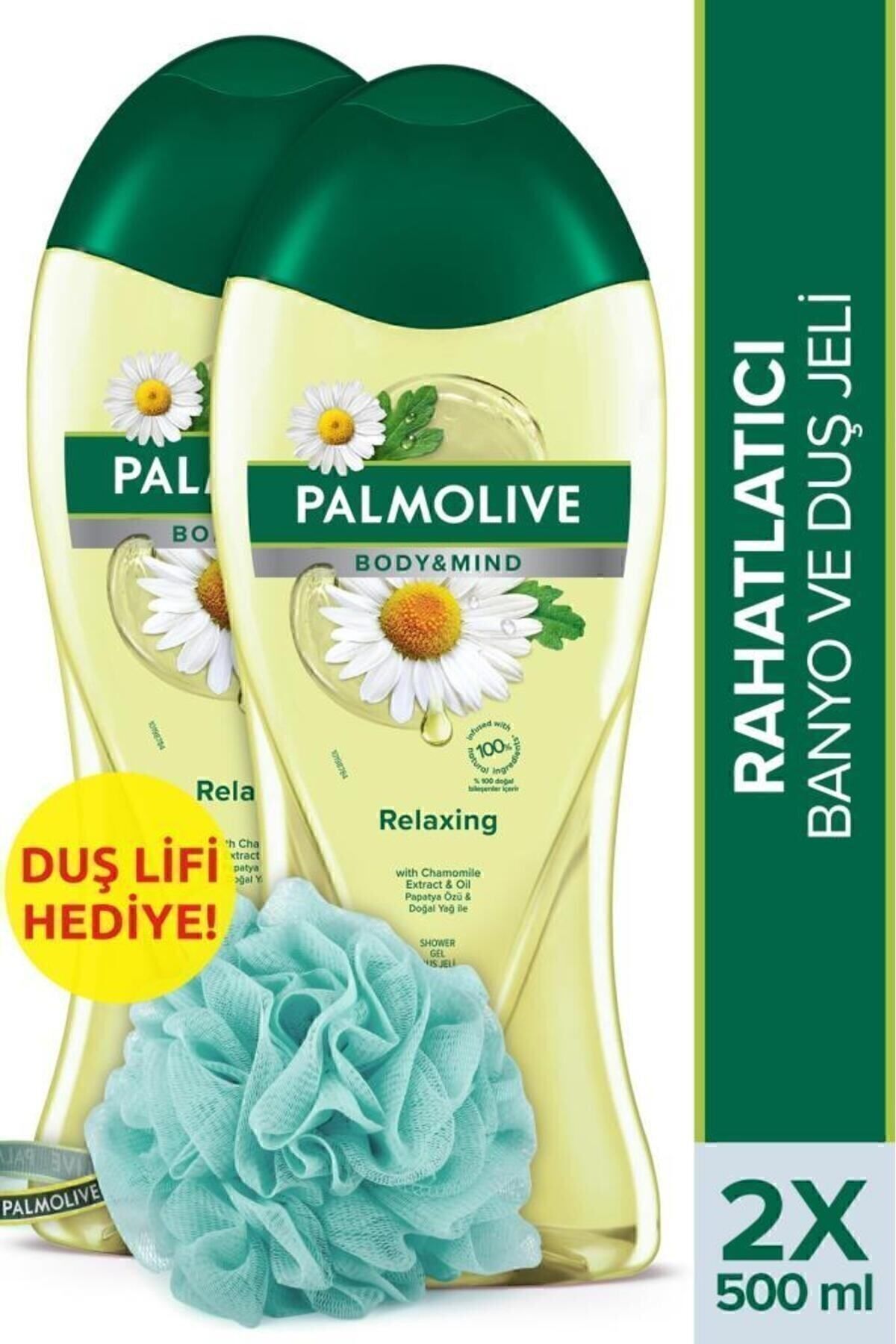Palmolive Body & Mind Chamomile Essence Relaxing Bath and Shower Gel 500 ml X 2 Pieces Shower Loofah Gift