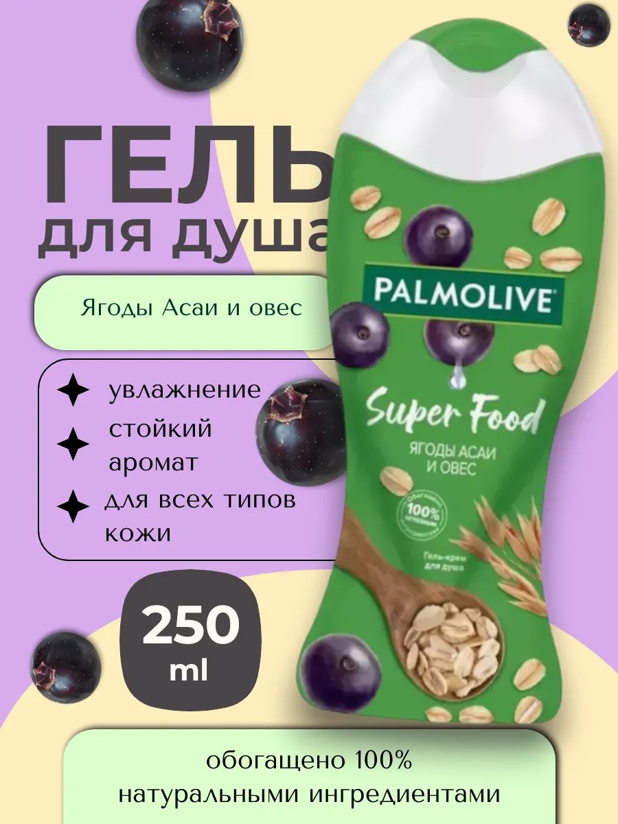 Попробуйте новый гель крем для душа Palmolive Super Food с экстрактами ягод Асаи и Овса - известными суперфуд ингредиентами. Обогащенная формула гель-крема подарит коже ощущение мягкости и гладкости. Порадуйте свою кожу суперфуд ингредиентами.