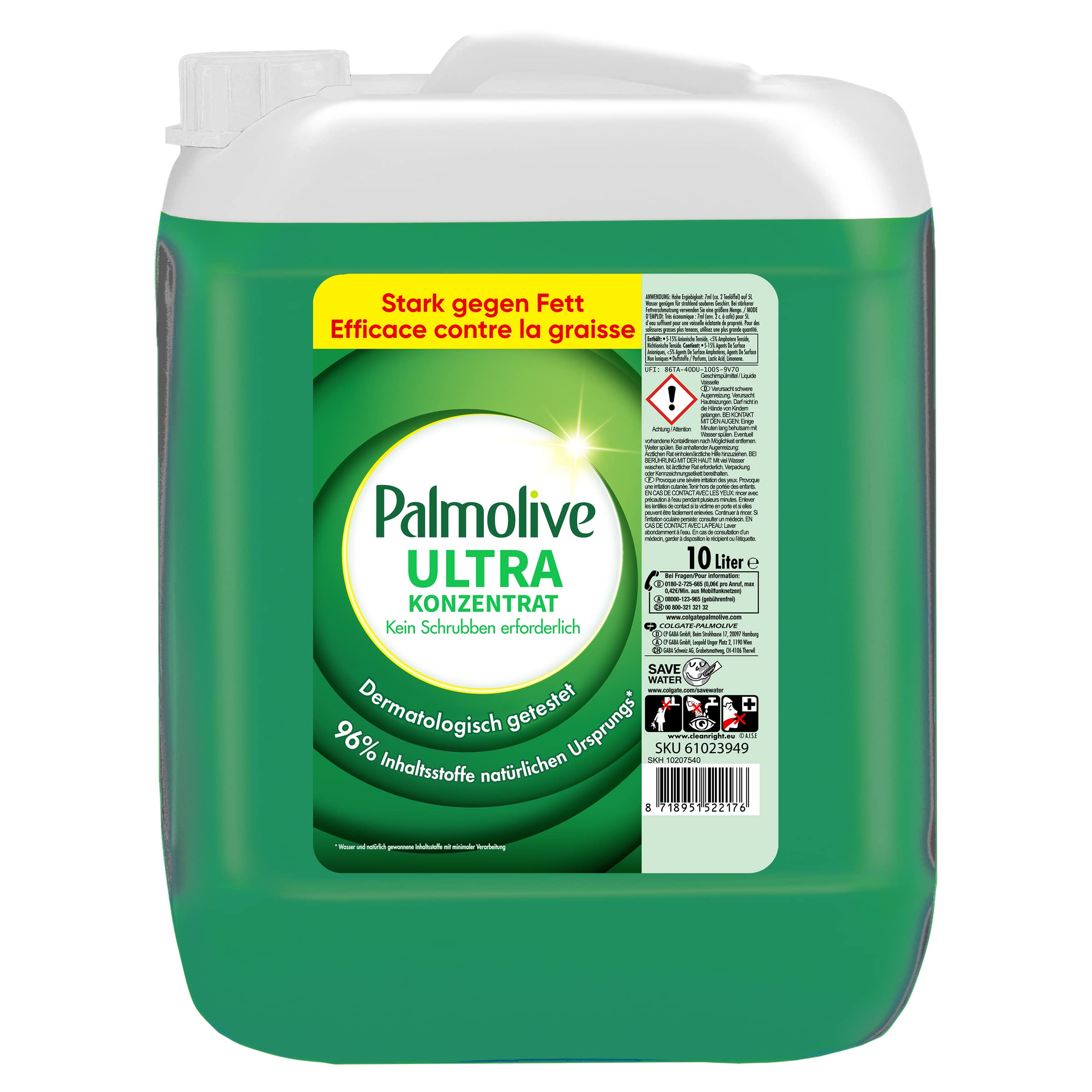 10L Kanister - optimal für Zuhause, Büro und Gewerbe. Ohne Mikroplastik (nach der Definition der ECHA). 99% biologisch abbaubare Formel (bezogen auf die organischen Inhaltsstoffe). 96% der Inhaltsstoffe natürlichen Ursprungs (Wasser und natürlich gewonnene Inhaltsstoffe mit minimaler Verarbeitung). Das Geschirrspülmittel entfernt mühelos hartnäckiges Fett und Eingebranntes, löst Kalkreste. Palmolive Ultra Original Spülmittel mit ultra konzentrierter Formel für starke Fettlösekraft.