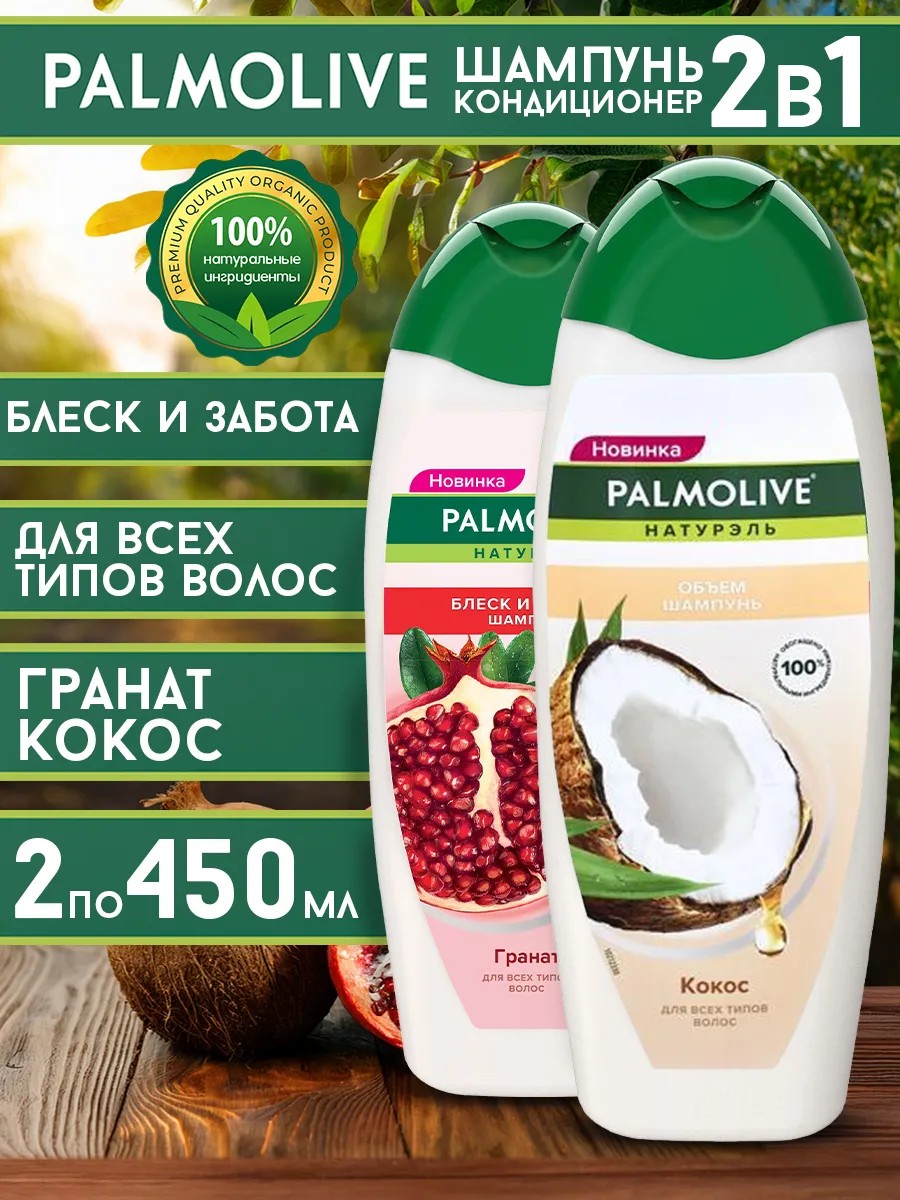 Palmolive Натурэль 2 в 1 «Кокос» и «Гранат», 450мл ×2 — это удобный набор шампуней с кондиционером, созданных для полноценного ухода за волосами. Каждое средство сочетает в себе очищающую и ухаживающую формулы, обеспечивая мягкое очищение, питание и лёгкость расчёсывания.