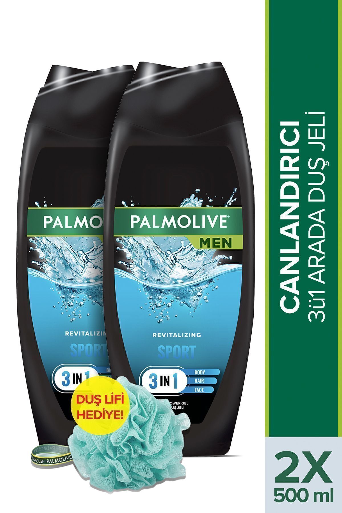 Palmolive Men Sport 3 in 1 Refreshing Shower Gel and Shampoo 500 ml X2 Pieces + Shower Fibre Gift