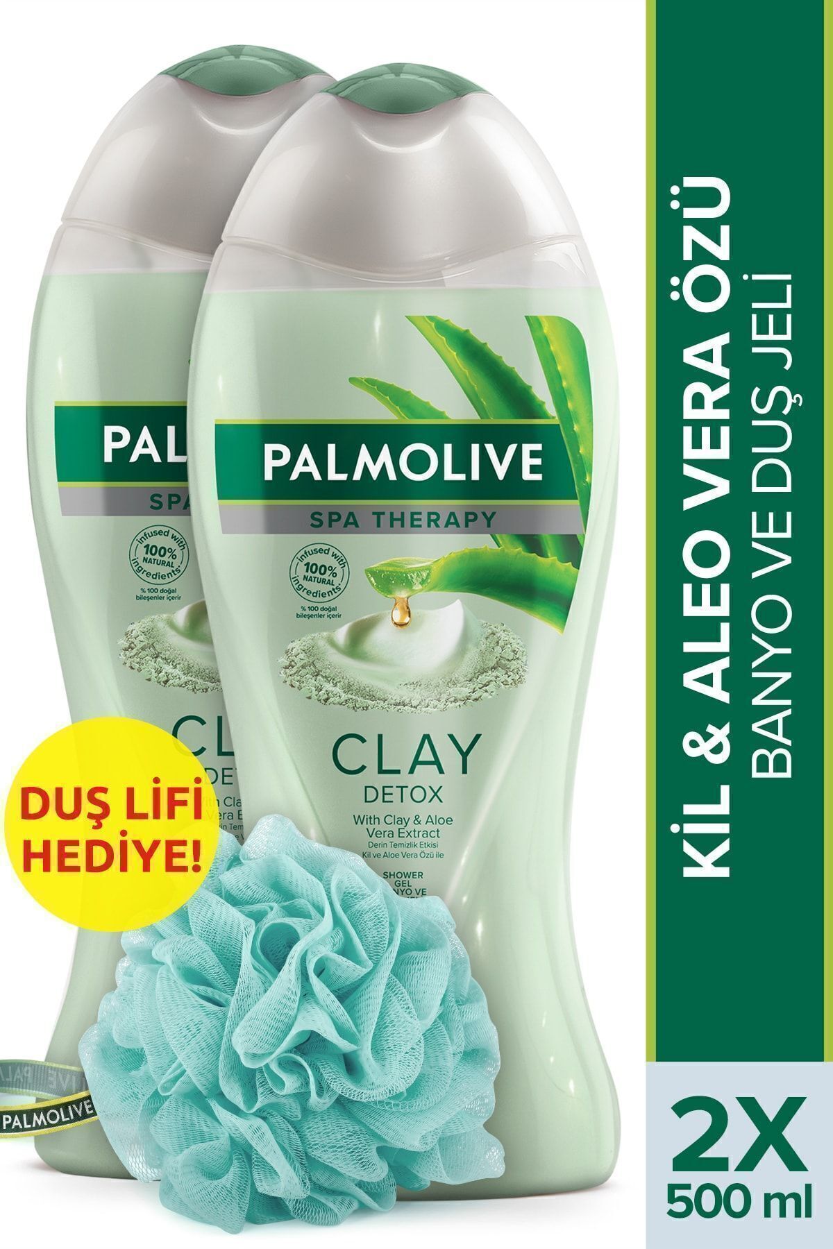 Palmolive Spa Therapy Clay Detox Clay and Aloe Vera Extract Bath and Shower Gel 2 x 500 ml + Shower Loofah Gift