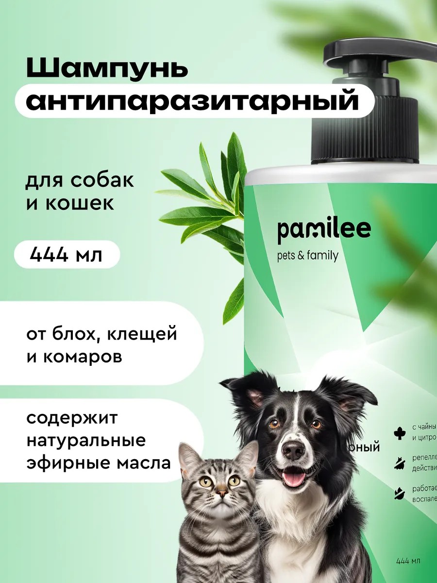 Pamilee Шампунь для собак и кошек от блох и клещей гипоаллергенный