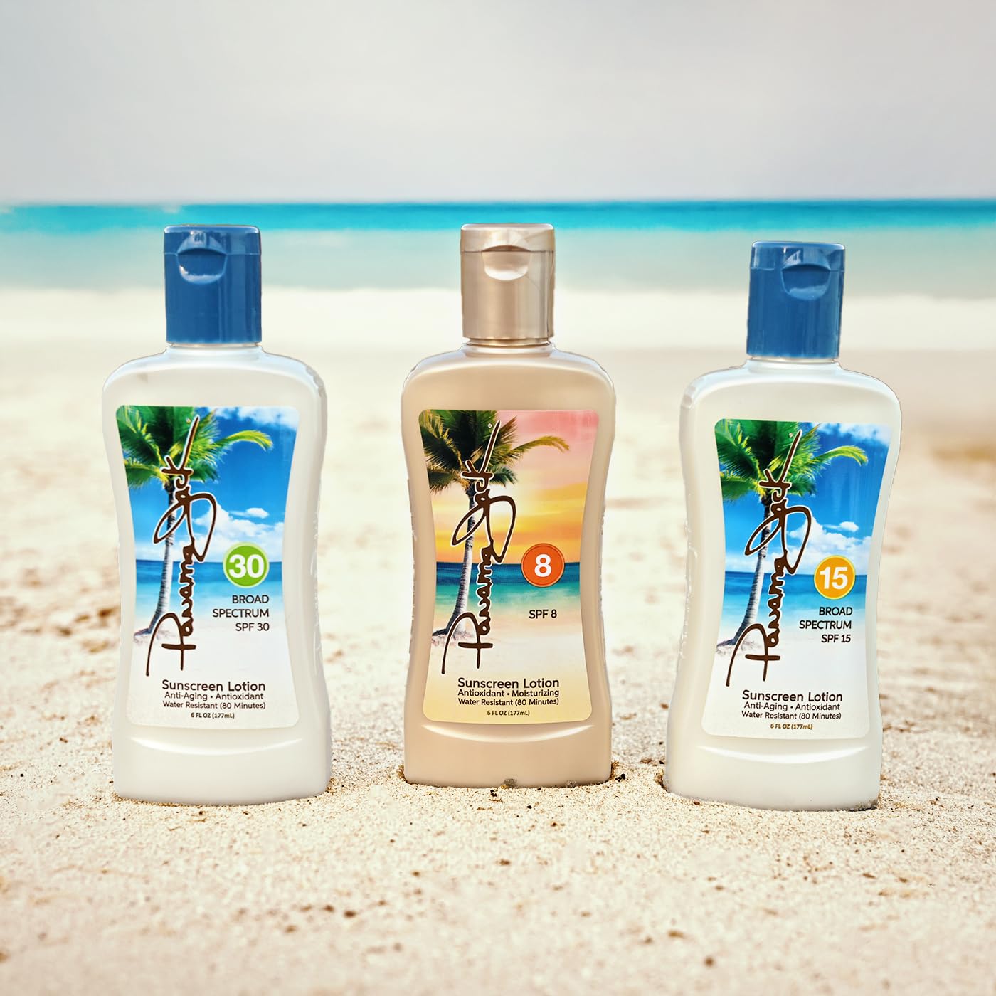 Panama Jack Golden Days Pack - Travel Sunscreen Tanning Lotion SPF 8 15 & 30 Suntan Sun Care Pack