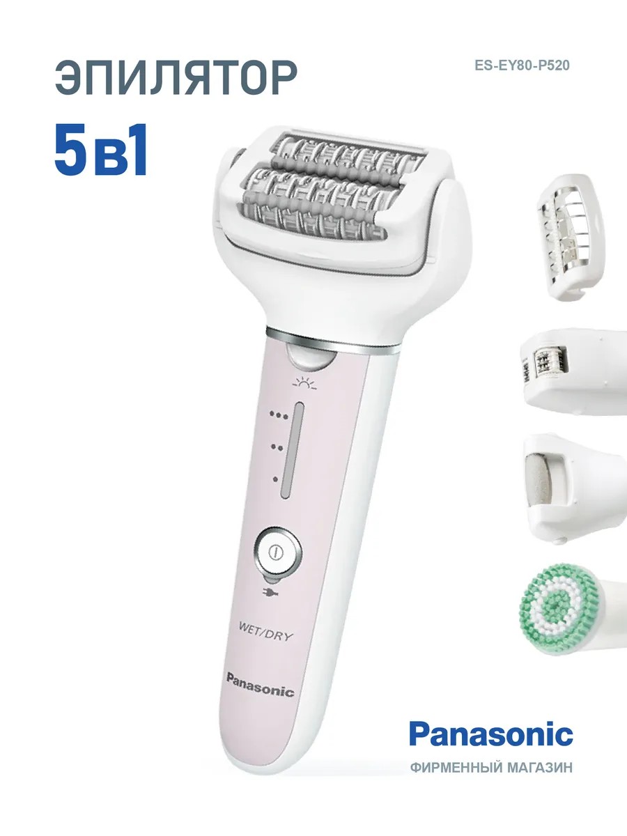 Эпилятор женский Panasonic ES-EY80-P520 электрический для сухой и влажной эпиляции в наборе из 7 предметов. Пять специальных насадок для лица, рук и ног, для деликатной эпиляции чувствительных зон, для шлифовки ступней, насадка для глубокой очистки. Электроэпилятор применяется для депиляции на любом участке тела и подходит для всех типов кожи и волос. Беспроводной аппарат имеет увеличенную на 30% головку и двойную систему дисков на 60 пинцетов. Головка депилятора может вращаться под углом до 90 во все стороны, повторяя контуры тела и оставляя невероятно гладкую кожу. Два диска обеспечивают полное удаление волос, где второй диск мгновенно захватывает волоски, пропущенные первым. Пинцеты идеально прилегают друг к другу, так что они способны захватить и удалить от корня даже волоски длиной в 0,5 мм, которые невозможно удалить с помощью восковой депиляции или лезвием бритвы. Она идеально повторяет любые контуры тела, не оставляя пропущенных волосков. LED-подсветка поможет без особого труда эпилировать деликатные и интимные места. Дипеляция труднодоступных зон с пеной, например в подмышках и на щиколотках. Устройство является влагозащищенным и его можно использовать в ванной или душе, а также мыть целиком под проточной водой. Использование эпилятора в мыльной воде позволяет смягчить кожу, благодаря чему удаление нежелательных волос происходит легко и безболезненно. Нажатием кнопки вы можете выбрать из 3 режимов скорости нужный, в зависимости от эпилируемой части тела и толщины волос. Полная зарядка в течение 1 часа позволяет устройству работать от аккумулятора вплоть до 30 минут. Машинка для удаления волос и бритья идеально подходит для депиляции бикини, ног и рук. Домашние эпиляторы Панасоник станут отличным подарком жене, девушке, подруге на день рождения, Новый год или 8 марта. Не забывайте, что после процедуры эпиляции необходимо обрабатывать кожу. В комплект входит чехол для хранения и щеточка для очистки.