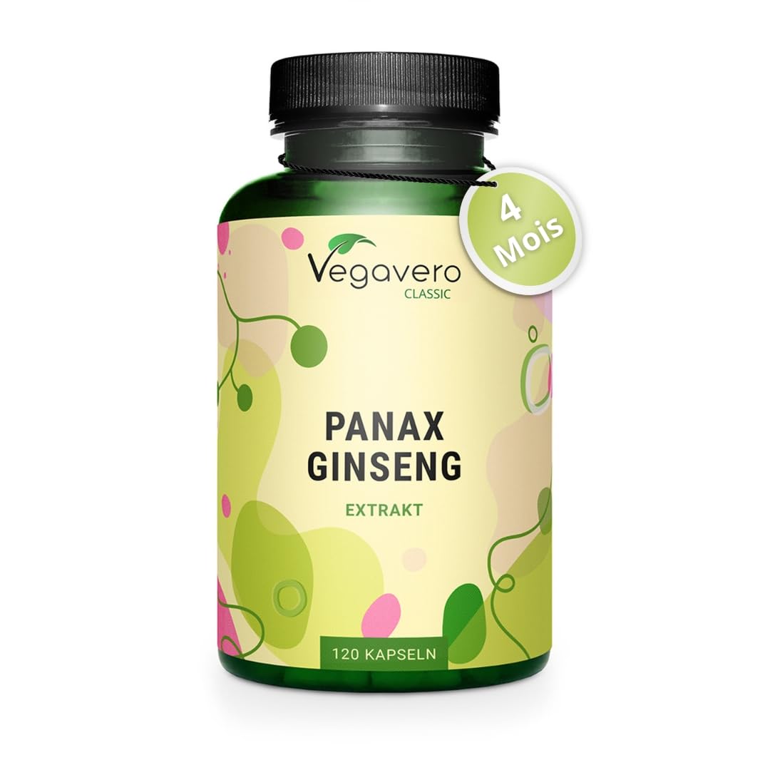 ALWAYS BY YOUR SIDE: Taking care of you is part of our philosophy. That's why, in addition to developing supplements tailored to your needs, we research unique formulations to achieve the perfect synergy of ingredients and dosages. We are at your disposal to advise and support you in achieving your goals, to provide you with certificates of analysis for our products and to answer all your questions. Contact us! VEGAVERO CLASSIC: Our Classic line is defined by high-quality, vegan supplements without artificial additives covering a wide range of essential nutrients, plant extracts and other functional ingredients. The focus is on active ingredients. Our products are constantly tested and improved by our team based on the latest scientific findings. Vegavero Classic - for us, this means quality, safety and practicality. NO ADDITIVES: To ensure the high quality of our product, we test our ginseng extract for the presence of possible microbial impurities as well as heavy metal residues. Unlike the majority of nootropic supplements (like Korean ginseng), we have chosen not to add any additives. Furthermore, our product is GMO-free and suitable for vegans. Per bottle: 120 capsules. Recommended dosage: 1 capsule per day. ? HIGH DOSAGE: Our supplement features an extract (panax ginseng extractum) instead of powdered ginseng, for a powerful dosage. Each capsule contains 600 mg of a Panax leaf extract (8:1), equivalent to 4800 mg of dried ginseng. The properties of ginseng are attributed to its high concentration of ginsenosides. Thus, our high-quality extract is standardized to 20 ginsenosides, to guarantee its anti-stress and anti-fatigue (boost) benefits as an adaptogen. NATURAL ENERGY SOURCE: Panax ginseng (like other plants such as Muira Puama and Maca) is a powerful nootropic, known to increase physical and mental performance, by improving memory and concentration. It would also act as an aphrodisiac. Considered an adaptogen, Korean red ginseng would also help to better manage stress while reducing mental and physical fatigue.TOUJOURS A VOS CÔTÉS : Prendre soin de vous fait partie de notre philosophie. C'est pourquoi, en plus de développer des compléments adaptés à vos besoins, nous recherchons des formulations uniques afin d'obtenir la parfaite synergie d'ingrédients et de dosages. Nous sommes à votre disposition pour vous conseiller et vous soutenir dans l'atteinte de vos objectifs, pour vous fournir les certificats d'analyse de nos produits et pour répondre à toutes vos questions. Contactez-nous !. VEGAVERO CLASSIC : Notre ligne Classic se définie par des compléments végétaliens sans additifs artificiels et de haute qualité couvrant un large éventail de nutriments essentiels, d'extraits de plantes et autres ingrédients fonctionnels. L'accent est mis sur les ingrédients actifs. Nos produits sont constamment testés et améliorés par notre équipe sur la base des découvertes scientifiques les plus récentes. Vegavero Classic - pour nous, cela signifie qualité, sécurité et praticité. SANS ADDITIFS : Pour garantir la haute qualité de notre produit, nous testons notre extrait de ginseng pour détecter la présence d'éventuelles impuretés microbiennes ainsi que des résidus de métaux lourds. Contrairement à la majorité des compléments de nootropes (comme le korean ginseng), nous avons fait le choix de n'ajouter aucun additif. Par ailleurs, notre produit est sans OGM et convient aux végétaliens. Par flacon : 120 gelules. Posologie recommandée : 1 gelule par jour. ? DOSAGE ÉLEVÉ : Notre complément présente un extrait (panax ginseng extractum) au lieu de ginseng en poudre, pour un dosage puissant. Chaque gélule contient 600 mg d'un extrait de feuilles de Panax (8:1), équivalant à 4800 mg de ginseng séché. Les propriétés du ginseng sont attribuées à sa forte concentration en ginsénosides. Ainsi, notre extrait de haute qualité est standardisé à 20 de ginsénosides, pour garantir ses bienfaits anti-stress et anti fatigue (boost) en tant qu'adaptogène. SOURCE D'ENERGIE NATURELLE : Le Panax ginseng (tout comme d'autres plantes telles que le Muira Puama et la Maca) est un nootropique puissant, reconnu pour augmenter les performances physiques et mentales, en améliorant la mémoire et la concentration. Il agirait également comme un aphrodisiaque. Considéré comme un adaptogene, le ginseng rouge de corée permettrait aussi de mieux gérer le stress tout en diminuant la fatigue mentale et physique.