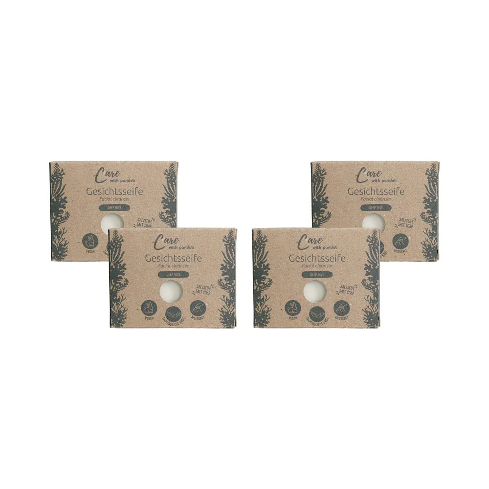 pandoo Savon pour le visage Savon au sel naturel Deep Dive 100 g Savon solide pour hommes et femmes Sans plastique et végétalien 4 pièces