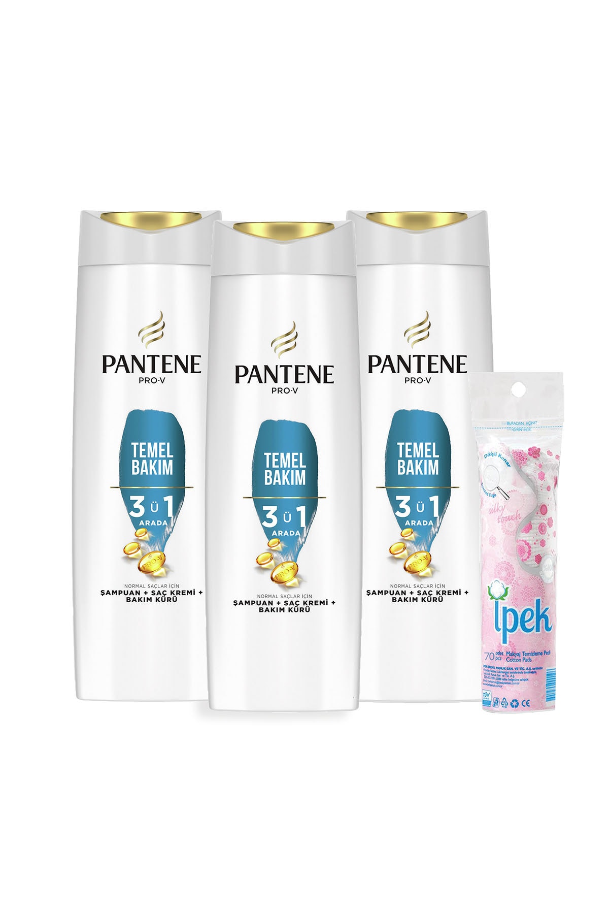 Pantene 3 in 1 Shampoo and Conditioner Basic Care 400 ml X 3 Make-up Cotton