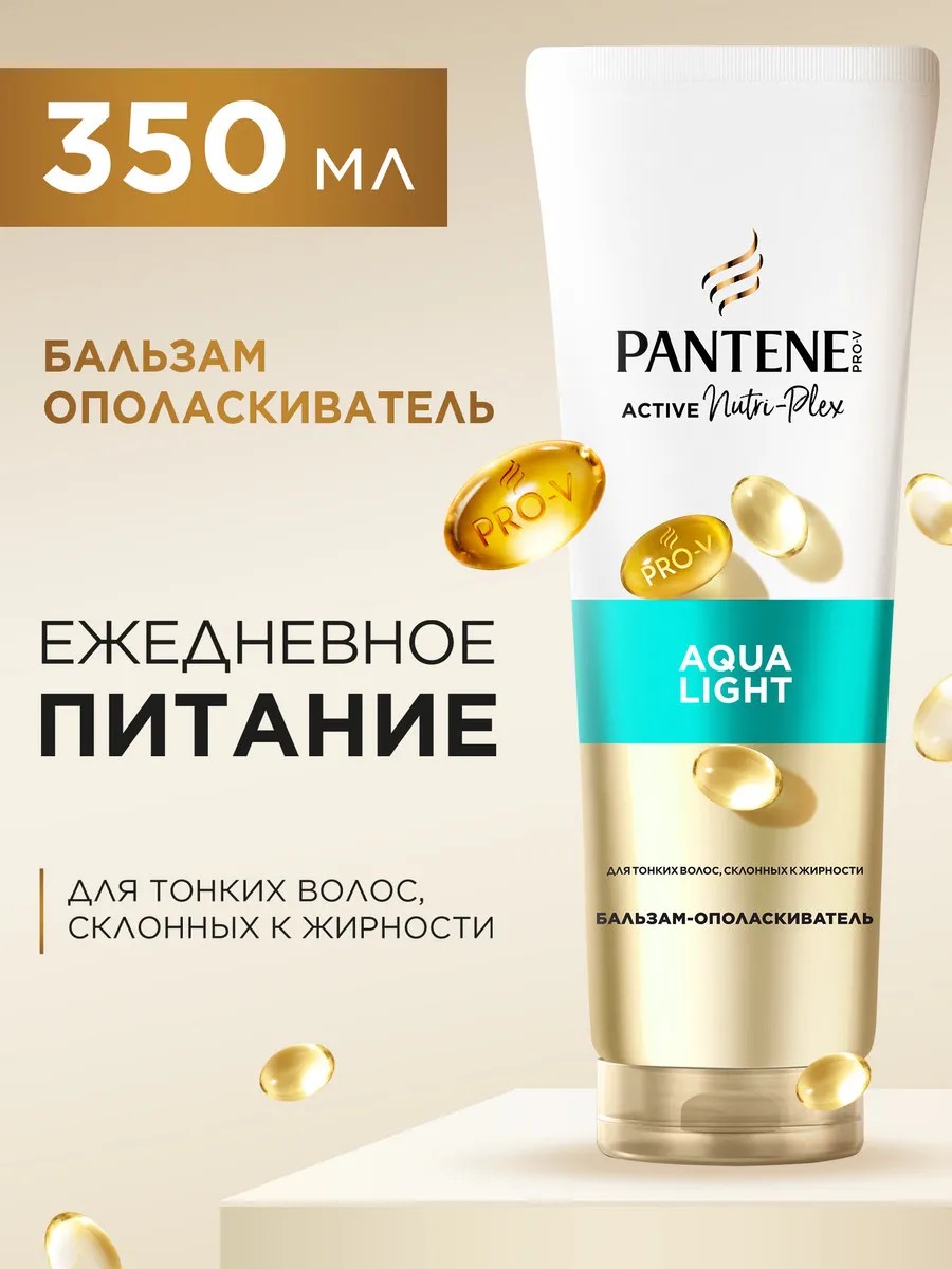 Откройте для себя бальзам-ополаскиватель Pantene Aqualight, незаменимый помощник в ежедневном уходе за волосами. Бальзам-ополаскиватель на каждый день придает тонким волосам более здоровый вид. Наполните волосы уникальной смесью PRO-V, мощной комбинацией провитаминаB5, укрепляющих липидов и защитных антиоксидантов. Наша усовершенствованная формула с технологией ACTIVE NUTRI-PLEX, содержащая на 50% больше веществ* для защиты связей в структуре волос, помогает укрепить и напитать тонкие волосы, не утяжеляя их. Протестировано Швейцарским Институтом Витаминов. *По сравнению с предыдущей формулой