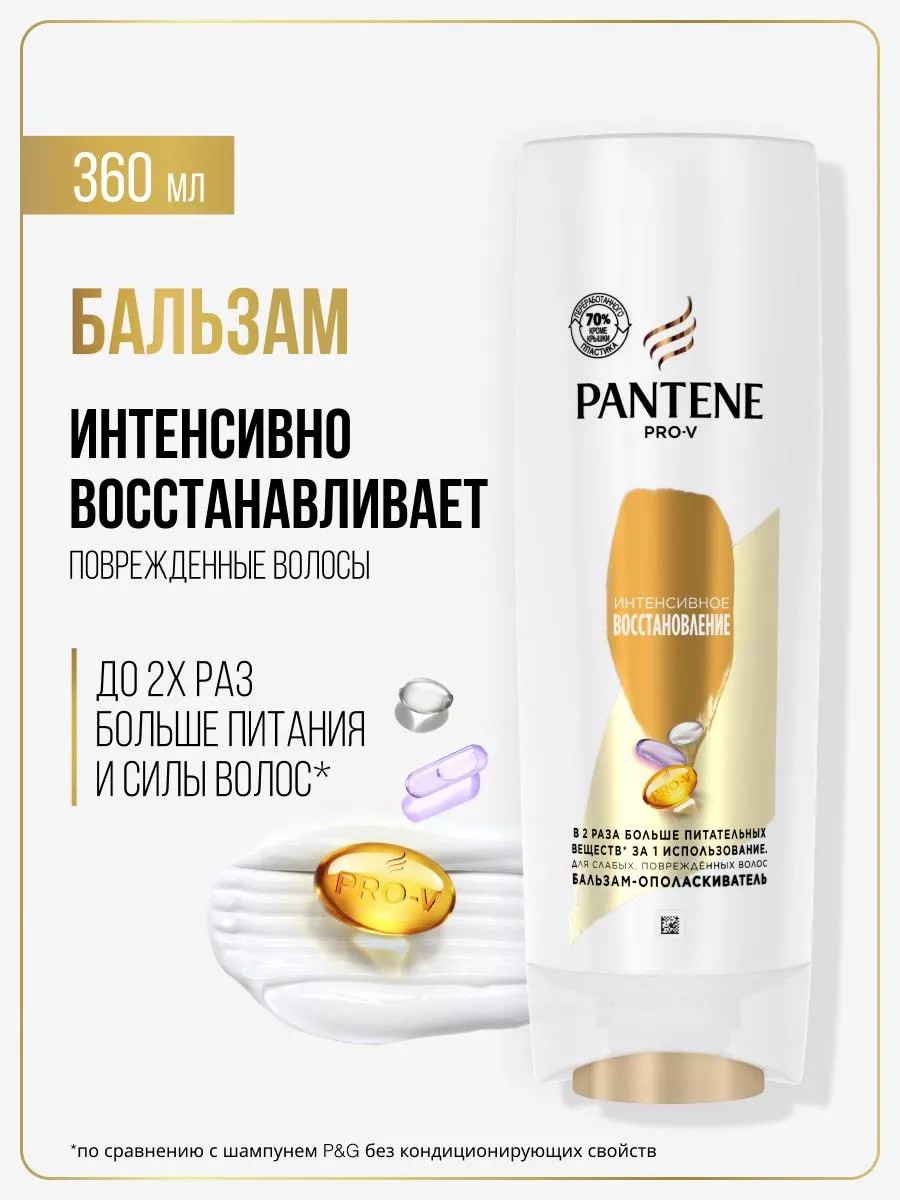 Бальзам-ополаскиватель PANTENE Pro-V (Пантин Про-Ви) Интенсивное Восстановление идеально подходит для ослабленных, поврежденных волос. Благодаря уникальному комплексу Pro-V он насыщает волосы активными питательными веществами и восстанавливает волосы по всей длине, не утяжеляя их. Бальзам-ополаскиватель мгновенно устраняет ломкость и признаки повреждений, предотвращает появление секущихся кончиков и возвращает волосам гладкость и здоровый блеск. Не содержит минеральных масел и красителей. Подходит для ежедневного применения и для окрашенных волос. Для достижения максимального эффекта используйте в сочетании с шампунем и маской;дополните уход маслом и спреем для волос из серии Интенсивное Восстановление. Легендарный бренд PANTENE заботится о здоровье и красоте волос женщин по всему миру уже более 75 лет. Сегодня Pantene - это богатый научный опыт ведущих экспертов и самые эффективные ингредиенты и питательные вещества, протестированные и одобренные Швейцарским Институтом Витаминов.