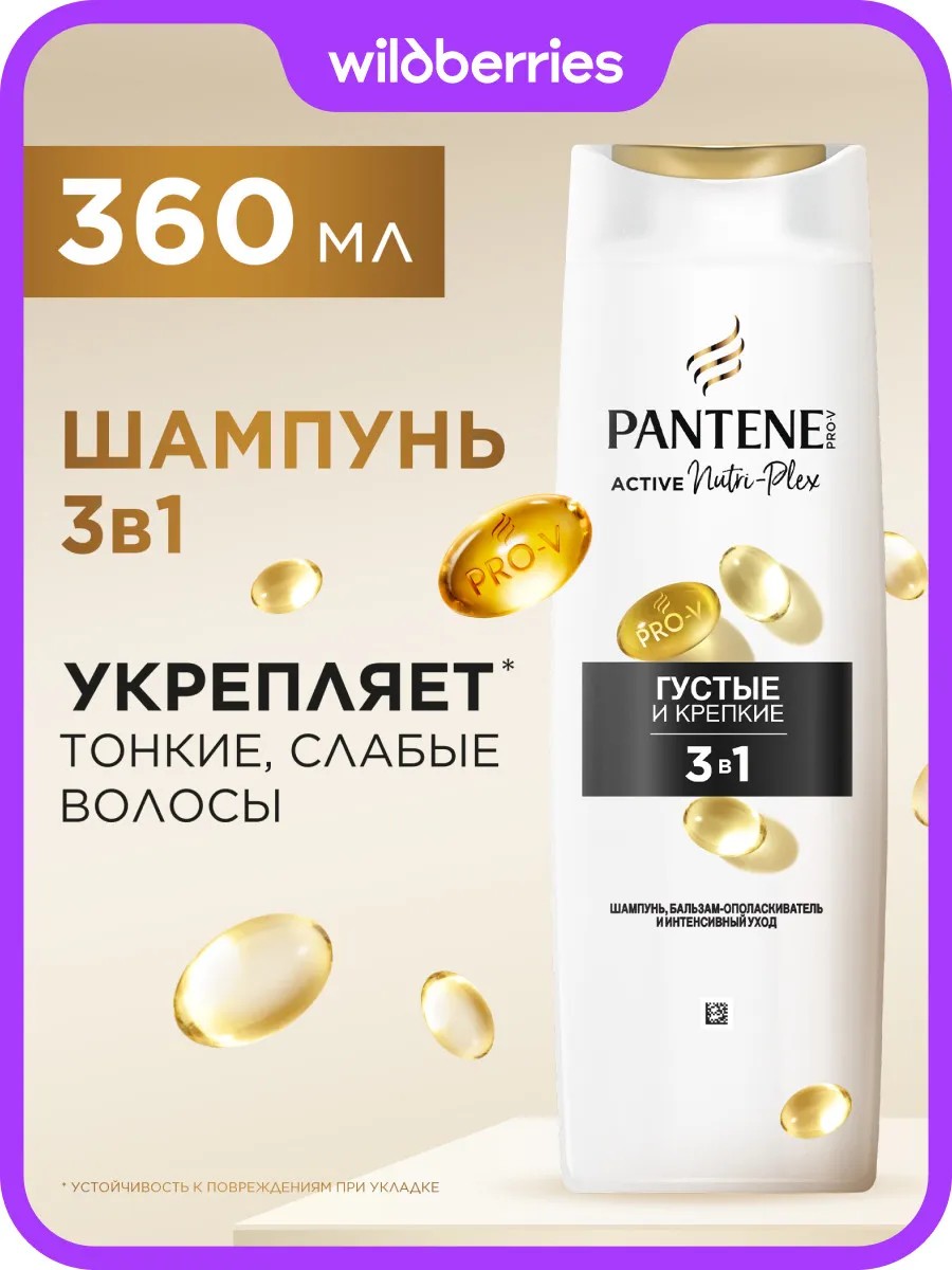 Шампунь, бальзам-ополаскиватель и уходовое средство PANTENE Pro-V (Пантин Про-Ви) 3 в 1 Густые и Крепкие идеально подходит для тонких и ослабленных волос. Это средство 3в1 деликатно очищает волосы, наполняя их активными питательными веществами Pro-V, облегчает расчесывание и укрепляет их за одно применение. Его питательная формула придает волосам здоровый внешний вид, визуальный объем и силу. Подходит для ежедневного применения, а также для окрашенных волос. Для достижения максимального эффекта дополните уход маслом Интенсивное Укрепление и спреем для волос из коллекции Густые и Крепкие. Легендарный бренд PANTENE Pro-V заботится о здоровье и красоте волос женщин по всему миру уже более 75 лет. Сегодня Pantene - это богатый научный опыт ведущих экспертов и самые эффективные ингредиенты и питательные вещества, протестированные и одобренные Швейцарским Институтом Витаминов.