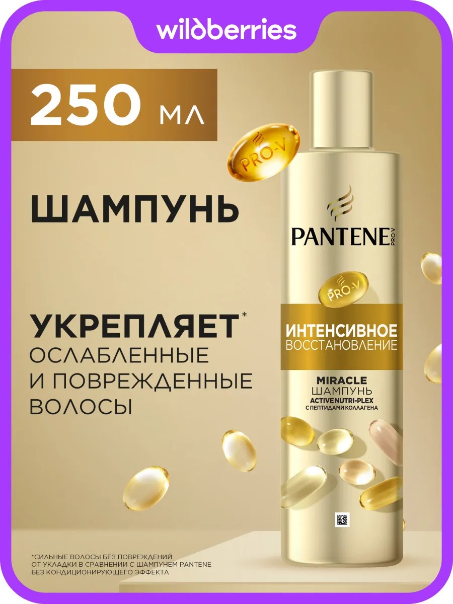 Шампунь Pantene Pro-V Miracle сыворотка Интенсивное восстановление с пептидами коллагена идеально подходит для сильно поврежденных волос. Благодаря уникальному комплексу Pro-V шампунь мягко очищает волосы и обеспечивает им превосходное питание, восстанавливая повреждения от укладки. Для достижения максимального эффекта используйте в сочетании с интенсивной сывороткой-кондиционером и маской; дополните уход маслом и спреем для волос из серии Интенсивное Восстановление. Легендарный бренд PANTENE Pro-V заботится о здоровье и красоте волос женщин по всему миру уже более 75 лет. Сегодня Pantene — это богатый научный опыт ведущих экспертов и самые эффективные ингредиенты и питательные вещества, протестированные и одобренные Швейцарским Институтом Витаминов. Подарите вашим волосам роскошный вид, который они заслуживают!