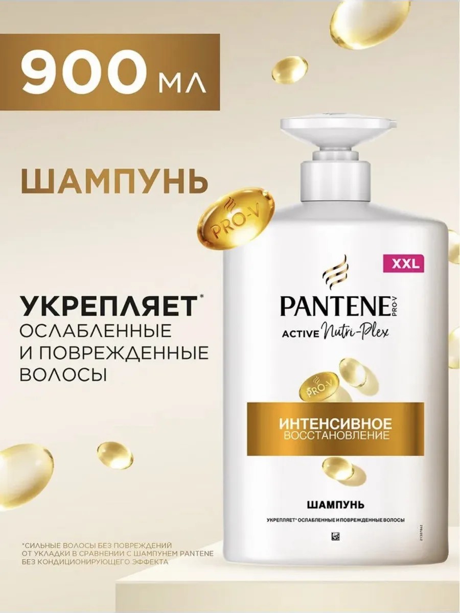 Теперь в большом объеме с удобным дозатором! Шампунь PANTENE Pro-V (Пантин Про-Ви) Слияние с природой Интенсивное восстановление идеально подходит для ослабленных и тусклых волос. Благодаря уникальному комплексу Pro-V шампунь деликатно очищает волосы, насыщая их активными питательными веществами, укрепляет их и возвращает тусклым волосам здоровый природный блеск. Формула шампуня без минеральных масел и красителей содержит ингредиент натурального происхождения - гуар, который делает волосы более шелковистыми, блестящими и восстанавливает их структуру. Подходит для окрашенных волос. Для максимального эффекта используйте в сочетании с бальзамом-ополаскивателем и кремом-сывороткой из коллекции Интенсивное восстановление . Легендарный бренд PANTENE Pro-V заботится о здоровье и красоте волос женщин по всему миру уже более 75 лет. Сегодня Pantene - это богатый научный опыт ведущих экспертов и самые эффективные ингредиенты и питательные вещества, протестированные и одобренные Швейцарским Институтом Витаминов. Шампунь Пантин 900