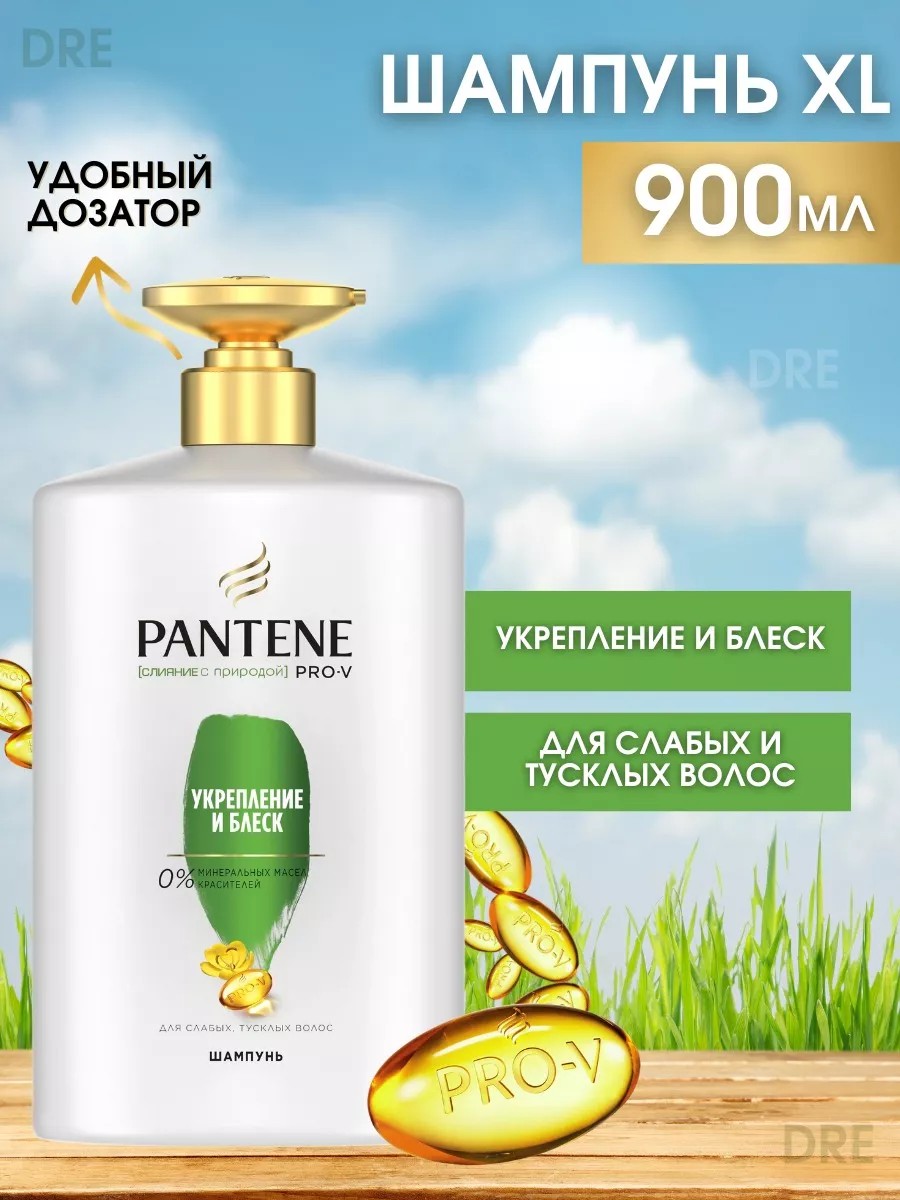 Теперь в большом объеме с удобным дозатором! Шампунь PANTENE Pro-V (Пантин Про-Ви) Слияние с природой Укрепление и блеск идеально подходит для ослабленных и тусклых волос. Благодаря уникальному комплексу Pro-V шампунь деликатно очищает волосы, насыщая их активными питательными веществами, укрепляет их и возвращает тусклым волосам здоровый природный блеск. Формула шампуня без минеральных масел и красителей содержит ингредиент натурального происхождения - гуар, который делает волосы более шелковистыми, блестящими и восстанавливает их структуру. Подходит для окрашенных волос. Для максимального эффекта используйте в сочетании с бальзамом-ополаскивателем и кремом-сывороткой из коллекции Укрепление и Блеск. Легендарный бренд PANTENE Pro-V заботится о здоровье и красоте волос женщин по всему миру уже более 75 лет. Сегодня Pantene - это богатый научный опыт ведущих экспертов и самые эффективные ингредиенты и питательные вещества, протестированные и одобренные Швейцарским Институтом Витаминов.