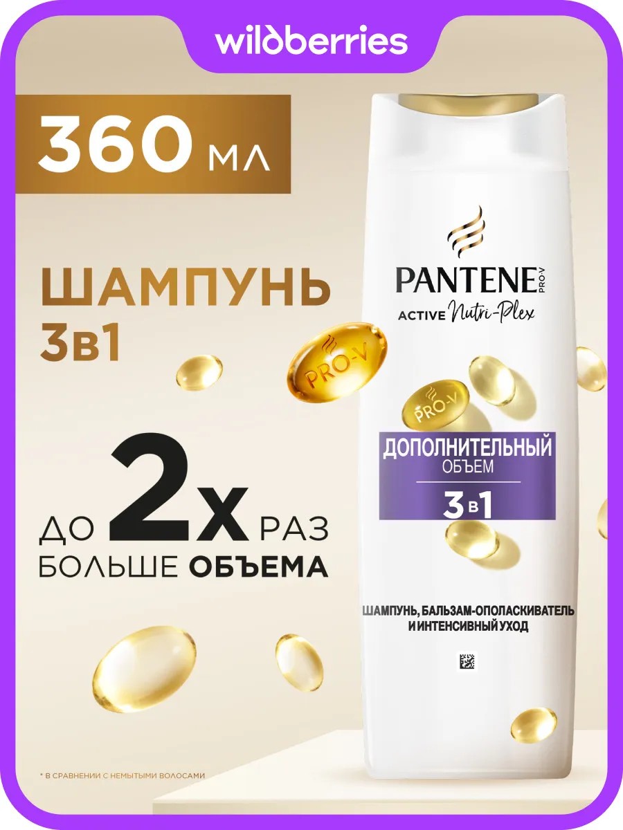 Шампунь, бальзам-ополаскиватель и уходовое средство PANTENE Pro-V (Пантин Про-Ви) 3 в 1 Дополнительный Объем идеально подходит для тонких и ослабленных волос, лишенных объема. Благодаря уникальному комплексу Pro-V Это средство 3в1 деликатно очищает волосы, насыщая их активными питательными веществами, облегчает расчесывание и придает им объем без утяжеления. Его питательная формула придает тонким, ослабленным волосам здоровый сияющий внешний вид, визуальный объем и силу. Подходит для ежедневного применения, а также для окрашенных волос. Для достижения максимального эффекта дополните уход спреем для волос из коллекции Дополнительный Объем. Легендарный бренд PANTENE Pro-V заботится о здоровье и красоте волос женщин по всему миру уже более 75 лет. Сегодня Pantene - это богатый научный опыт ведущих экспертов и самые эффективные ингредиенты и питательные вещества, протестированные и одобренные Швейцарским Институтом Витаминов.