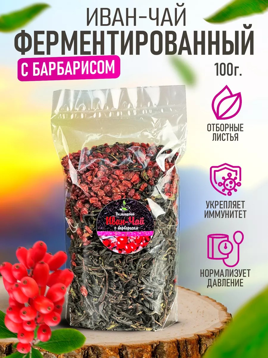 Ivan-Chai is an excellent choice of healthy beverages. This large-leaf fireweed tea is prepared using classic tea-making techniques on professional tea equipment at one of the leading tea factories in the Vologda Region. The fireweed leaf in this drink is tightly rolled into a beautiful tea leaf and fermented. An experienced technologist has determined the precise degree of fermentation at which the tea acquires its characteristic fruity aroma with hints of prune and pear. This delicious and healthy vitamin-rich health tea is made from ripe red barberries. Barberry is considered a berry that prolongs youth. Official medicine uses it to treat liver, kidney, and gallbladder diseases. Many people drink this tea simply because it is delicious and aromatic. Store in a dry place, away from strong-odor substances. Health benefits of Ivan-Chai: - Boosts immunity. - Protects the stomach. - Normalizes blood pressure. - Natural antioxidant. - Cleanses blood vessels. - Gives strength and energy. - Caffeine-free. No dyes, no preservatives! TASTY! NATURAL! HEALTHY!