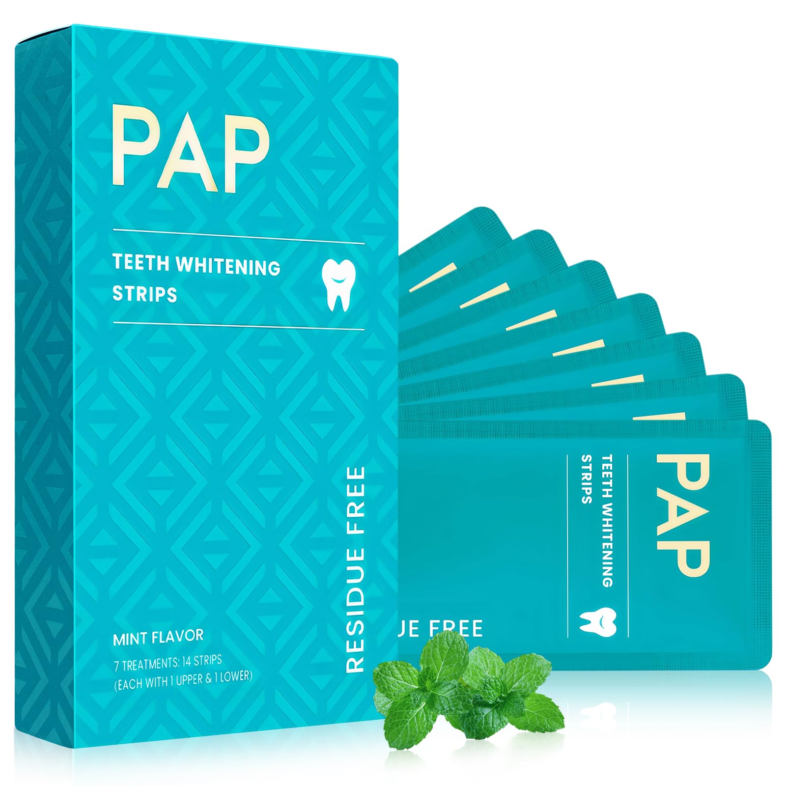 Pap Dry Teeth Whitening Strips 14 Count No Gel Residue Dentist Recommended Sensitivity-Free Formula Enamel Safe Mint Fresh Whitener for Coffee Tea Stains Removal 7 Treatments