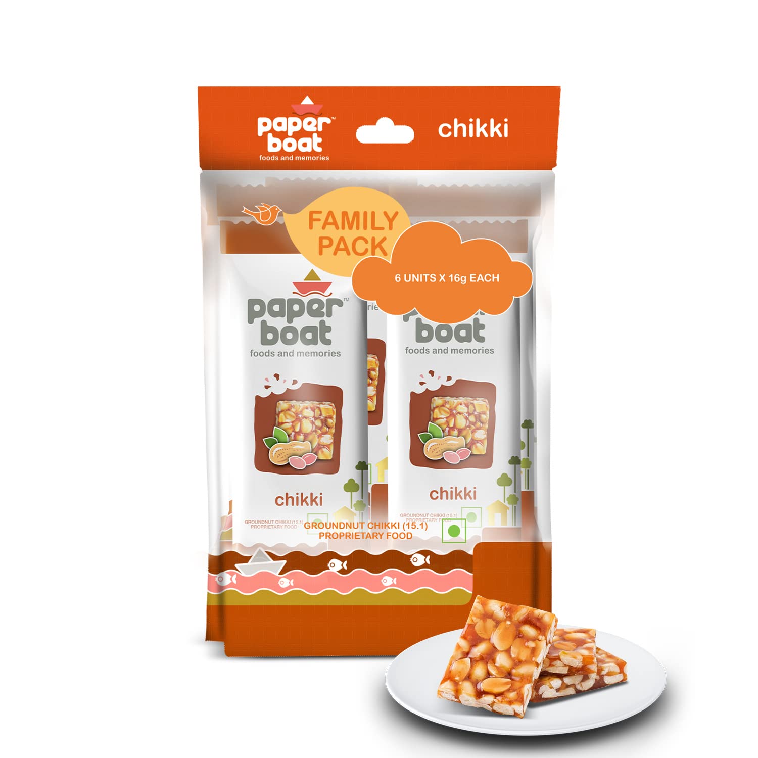 Paper Boat Paper Boat Chikki Family Pack Peanut Bars No Preservatives and Added Colors Gajak Candy Made with Jaggery Gazak (6 Pieces 16g Each)
