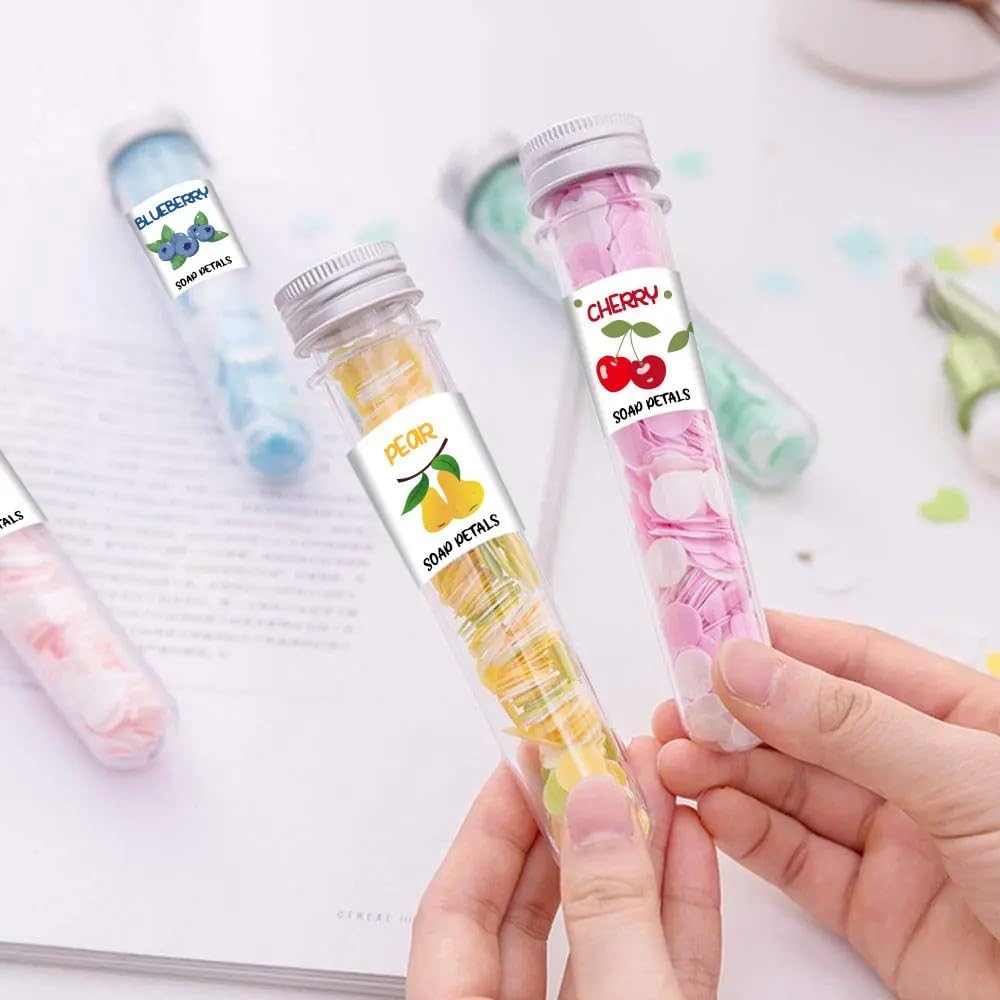 Paper Soap | Travel-Friendly Disposable Soap Flakes | Scented Mini Handwash Strips | Tube Bottle with Flower Design | Pocket Size Hygiene for Travel Office Camping (2)