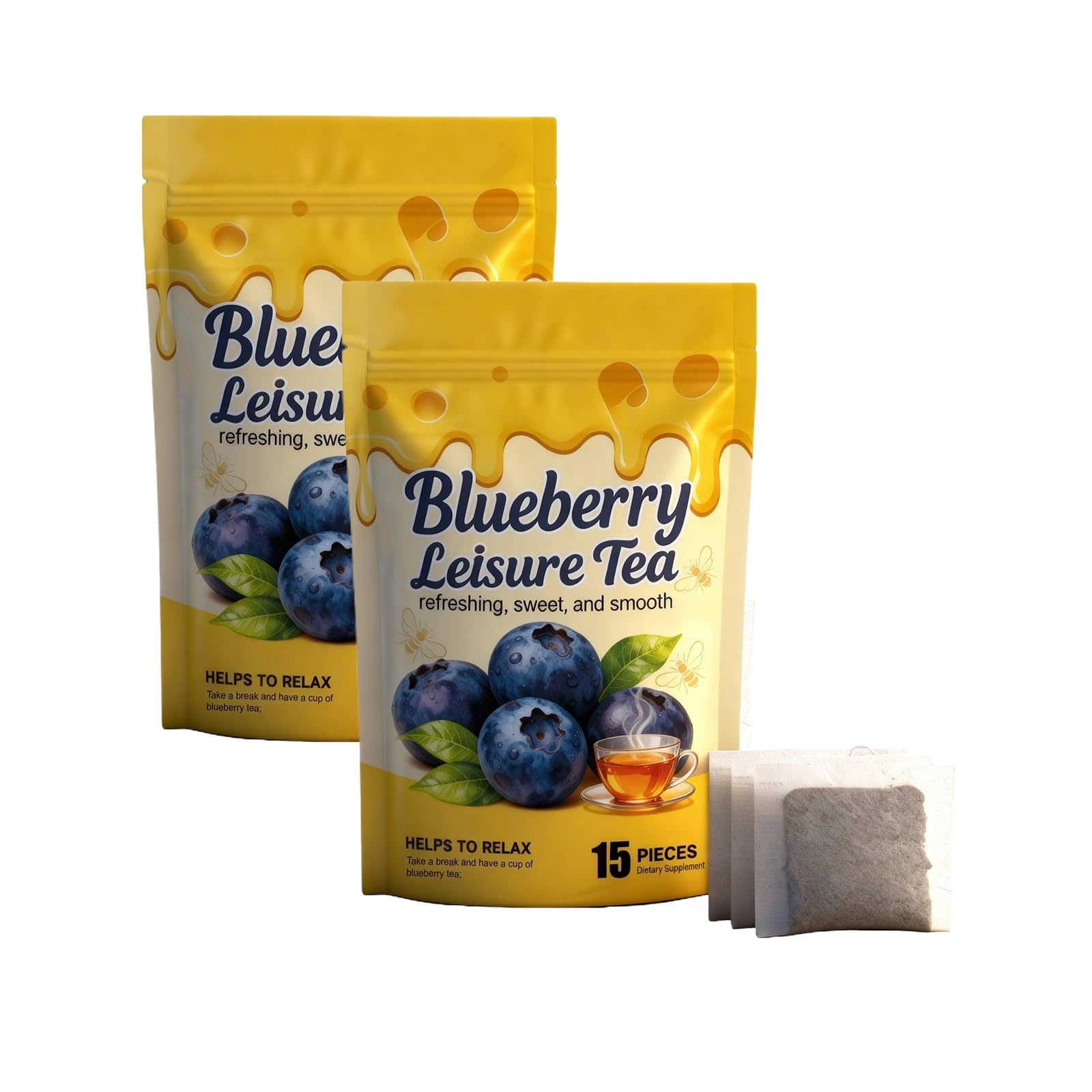 Paquet De 2 Sachets De Thé Noir Aromatisés À La Myrtille Scellé Individuellement Thé De Loisirs Haut De Gamme Mélange De Baies Sucrées, Infusion Rapide