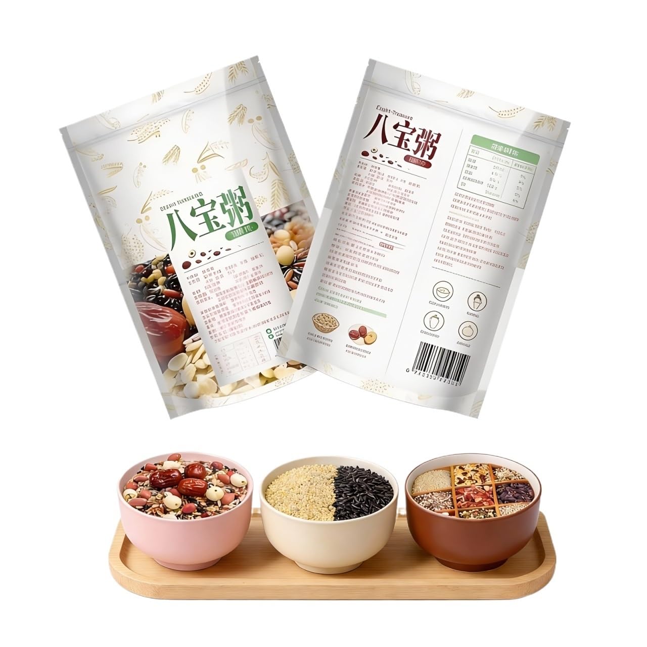 Paquet De 3 Mélanges De Bouillie Aux Huit Trésors De 500 G, Assortiment De Grains Entiers Et De Haricots For Congee, Petit-déjeuner Facile À Cuisiner, Fraîcheur Scellée Sous Vide