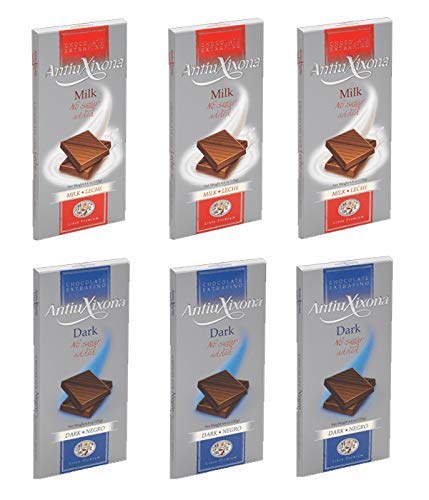 Paquet de 6 chocolats sans sucres ajout s Antiu Xixona. 3 x Chocolats au lait & 3 x Chocolats purs