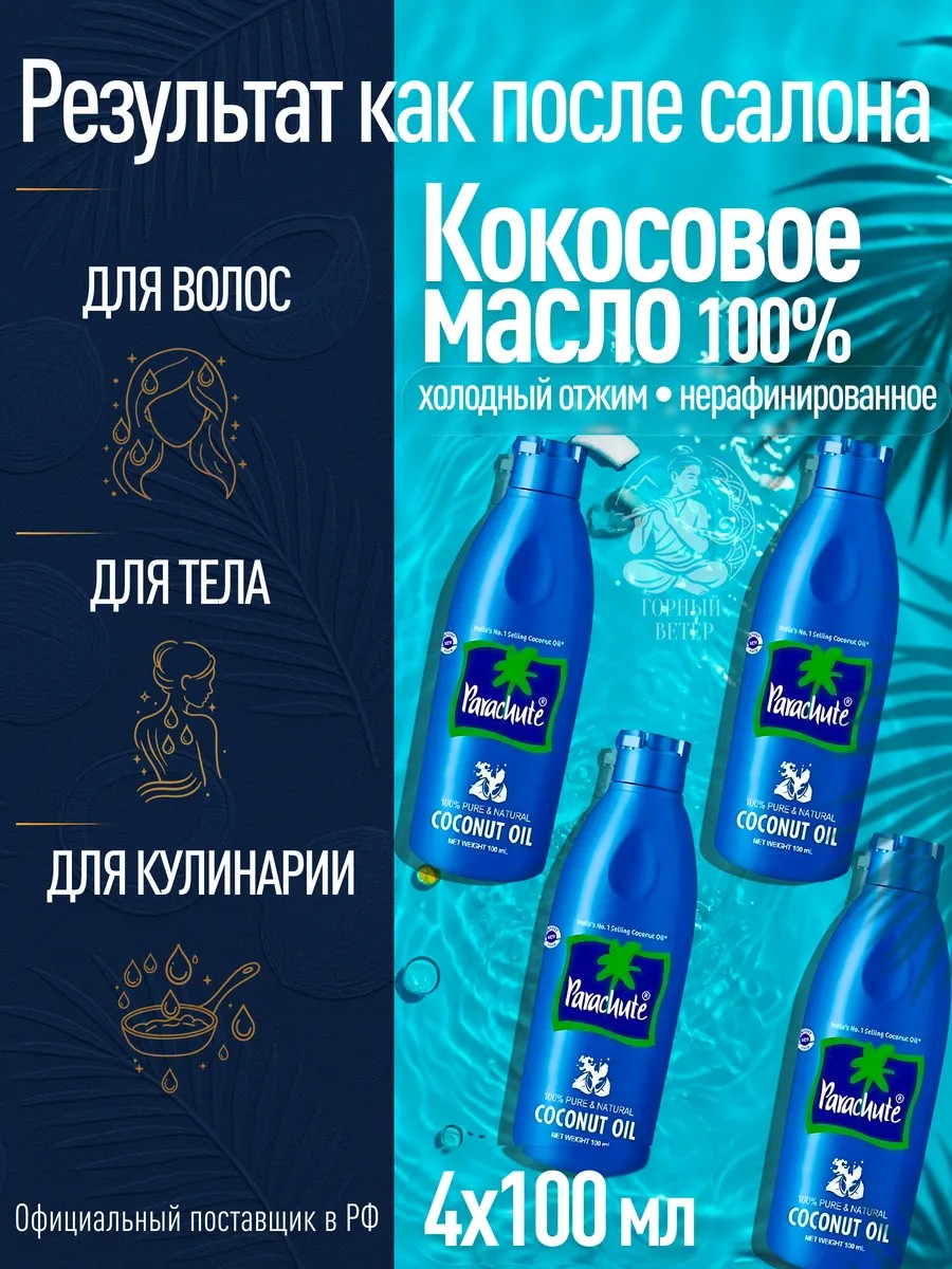 | Комплектация | Кокосовое масло для тела, волос и ровного загара 4 по 100 мл |